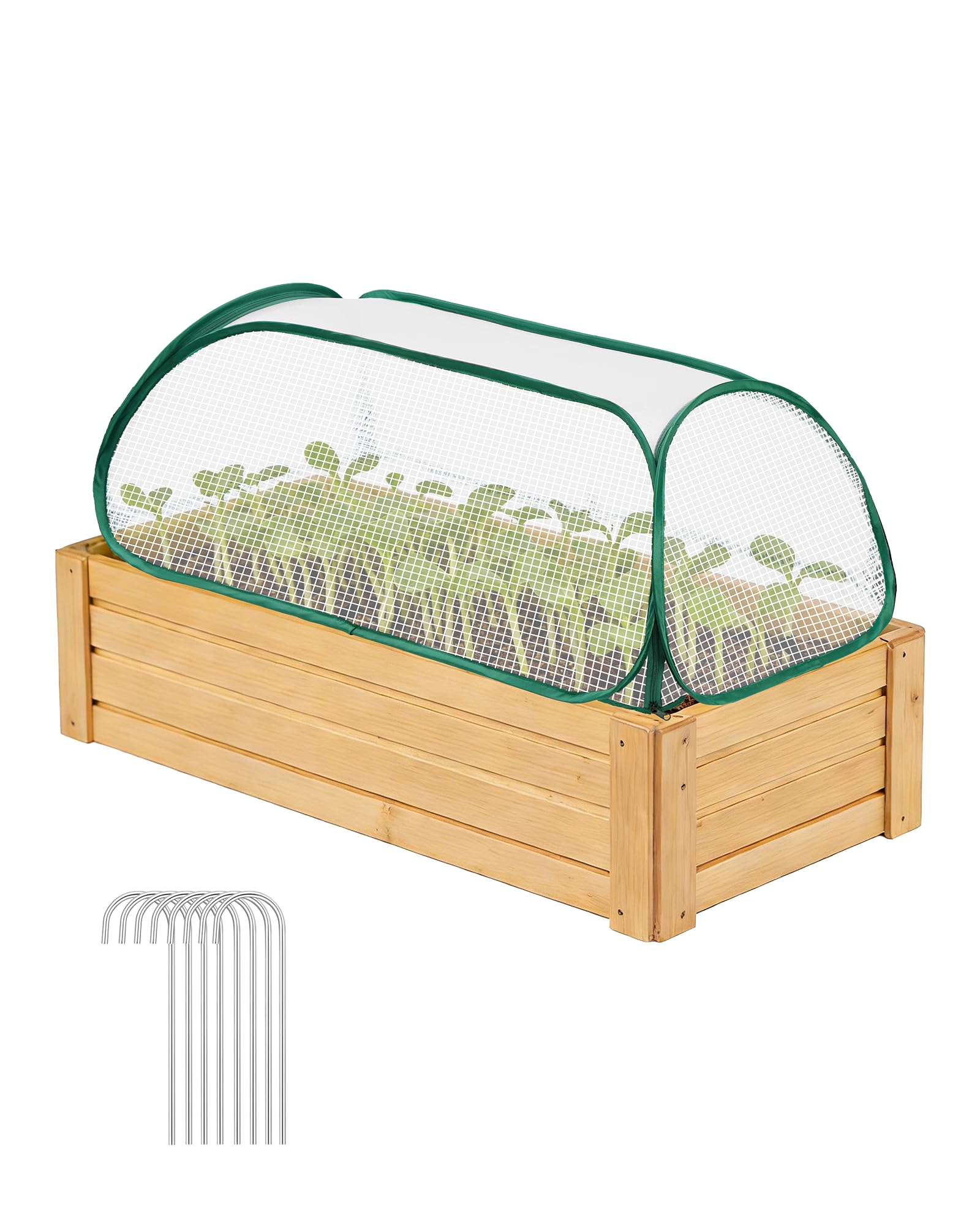 Complete Raised Bed Cover Set: Includes 1 raised bed greenhouse cover (45in x 22in x 16in), 8 garden staple stakes, and 1 storage strap. Transparent sides allow easy observation of seedlings without removing the cover