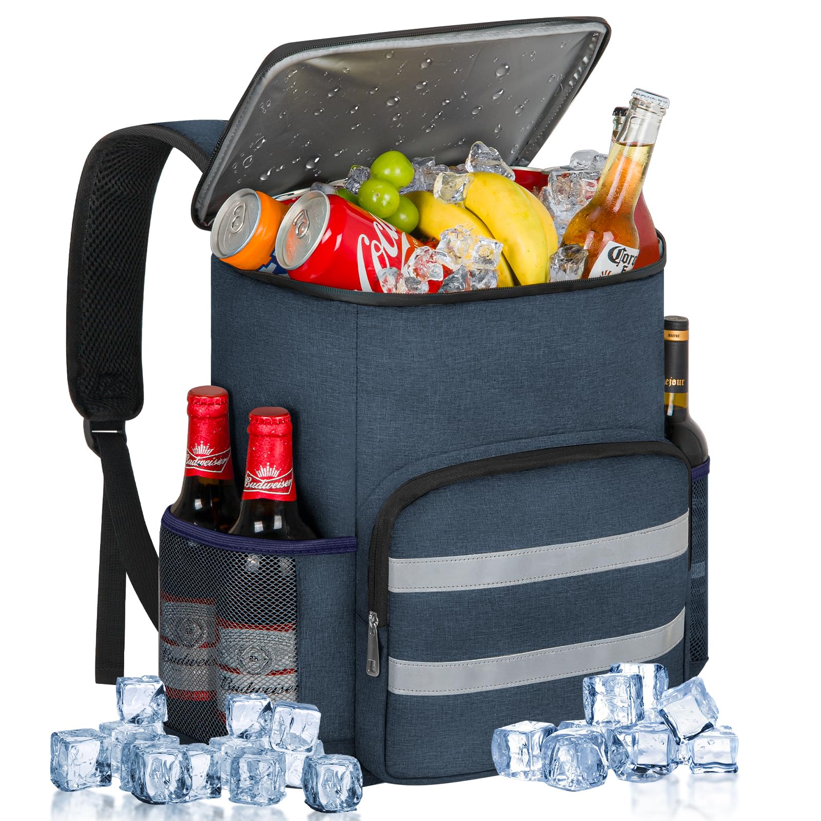 - 【Longer Cooling Time -20h】: 's backpack cooler is made of high-quality PEVA material and thick insulating foam. Our waterproof backpack with cooler compartment keeps your food and drinks at the desired temperature (hot or cold) to 8-20hrs. You can drink cold beer, eat fresh snacks or fruit with friends or family anytime.