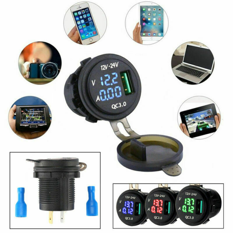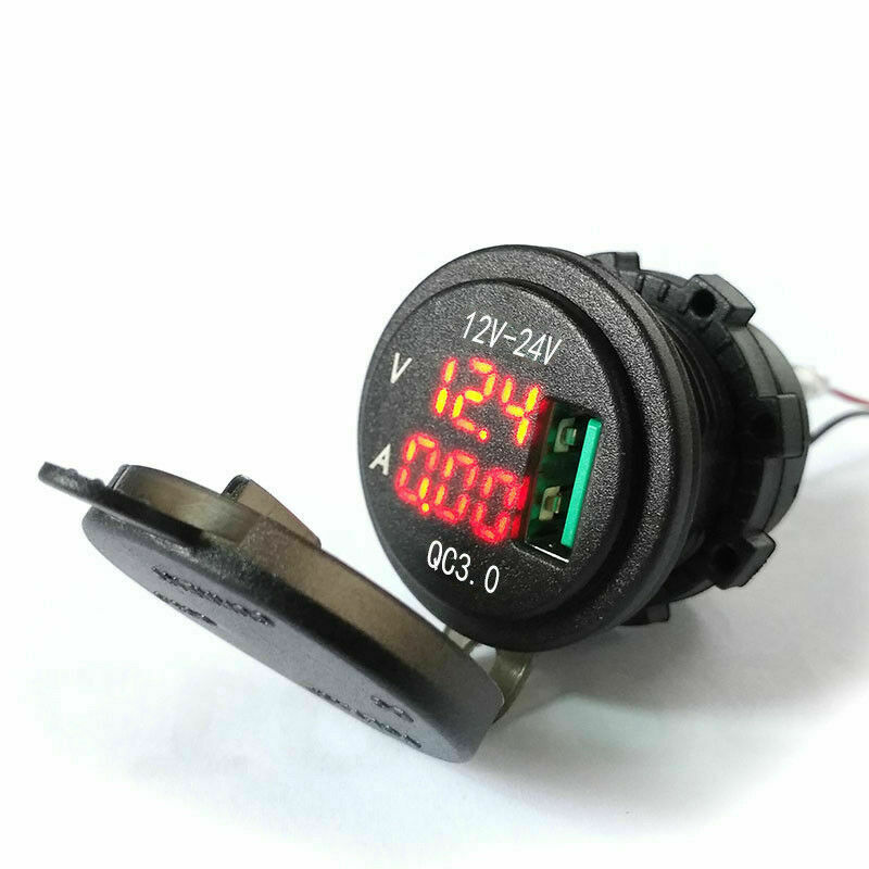 easy to use and install Input Voltage: DC 12 - 24V Voltmeter Measure Voltage: DC 8-30V USB Output : DC 5V-6.5V 3A, 6.5V-9V 2A, 9V-12V 1.5A Size: 5×2.9cm Modification USB socket charger with voltmeter, real-time show the car battery voltage and USB output Current. Support to install in 12-24V motorbike, car, boat, motor, riding mower, SUV, ATV, tractor or car. widely used with electric equipment for power supply: mobile phone, tablet, GPS, camera, mp3, etc. IP66 Waterproof, Full Competence for Outdoor Usage