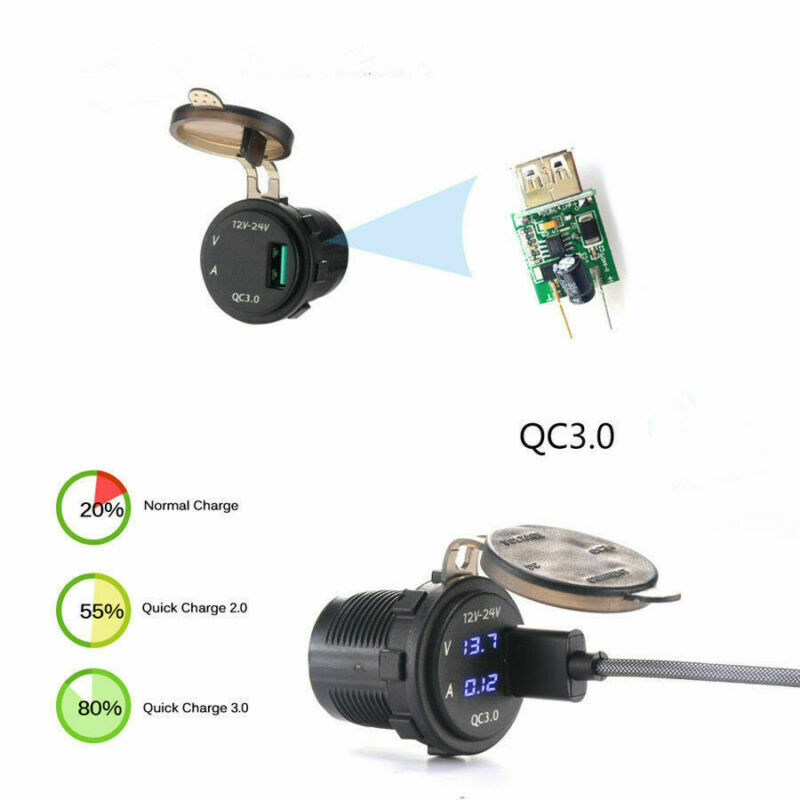 LED ATV Motorcycle USB Fast Charger Amp Volt Meter 12/24V For Car Truck Boat G