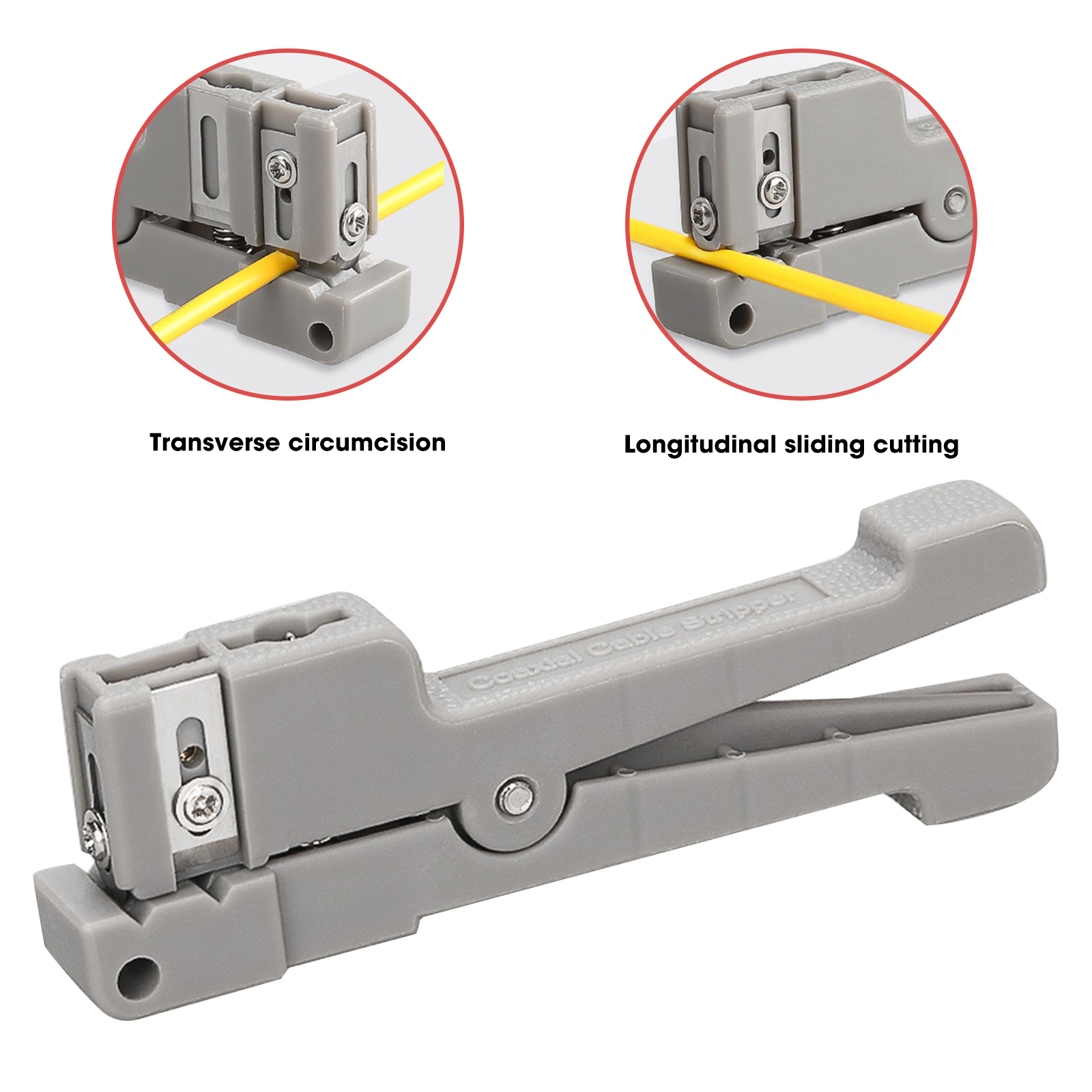 Features: 1. Made of high-quality materials, small and lightweight, with long service life 2. The blade is sharp and easy to cut, including three straight-edged blades and one curved-edged blade, suitable for stripping cable sheaths with a diameter of 0-3.2mm 3. It can be cut horizontally or vertically, suitable for indoor bundle optical cable sheath, ribbon optical cable loose tube, CATV micro coaxial cable 4. Rebound spring design, effectively tighten the peeler, reduce the volume to protect the blade