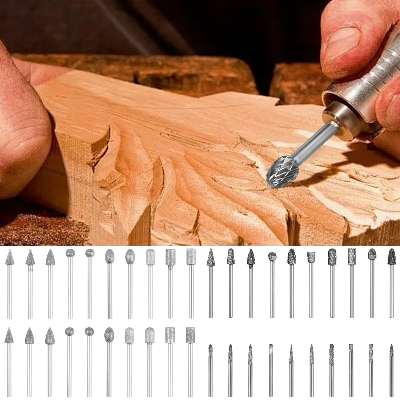 This carbide burr and diamond grinder bit set features an elegant design suitable for carving or grinding various materials . It can meet most of your drilling needs . Ideal for DIY crafts , shaping , and home repair . It makes dozens of times more efficient than manual files and nearly ten times more efficient than small , handle mounted grinding wheels .