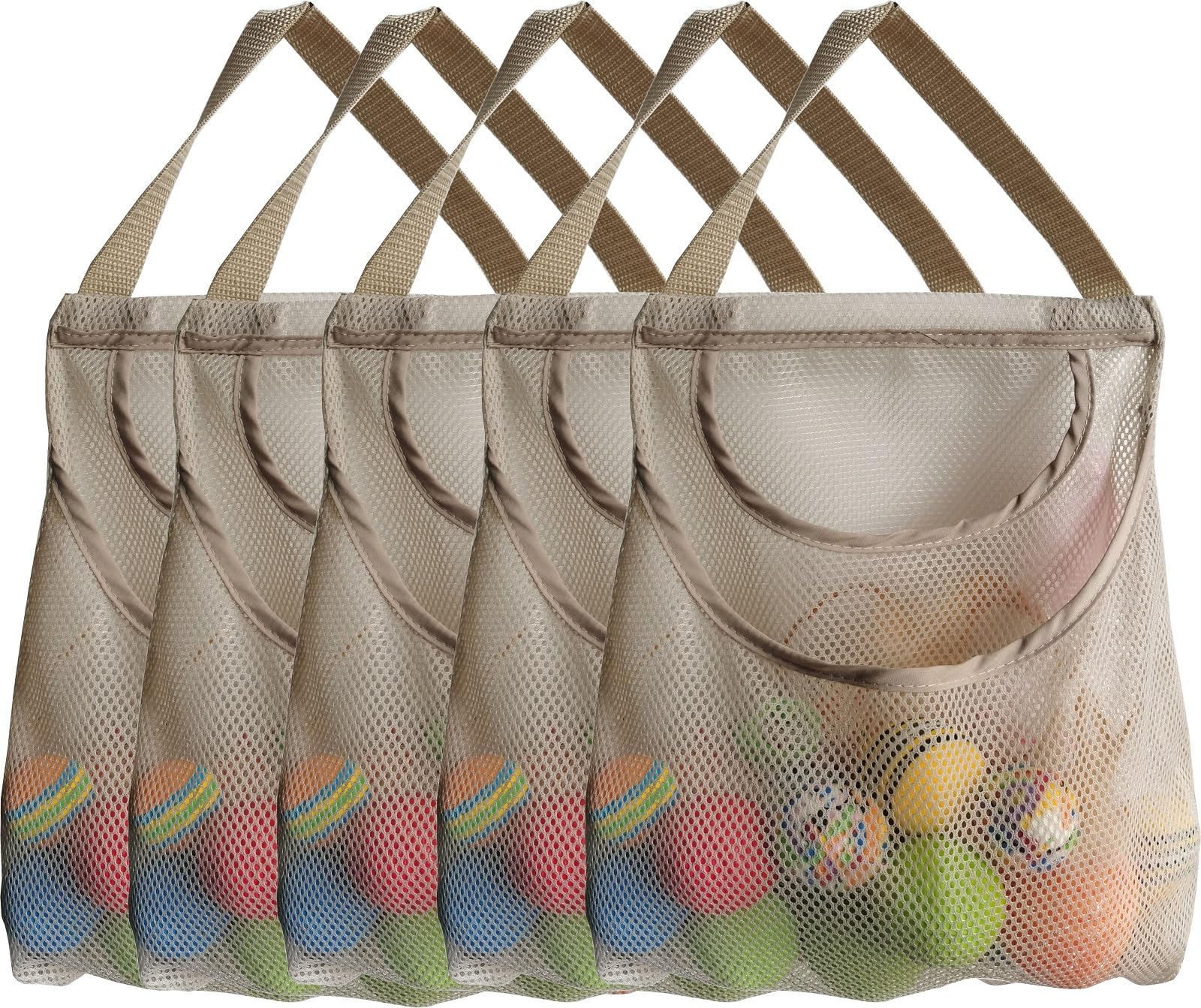 - Strong & Net Mesh Bags: our strong pulling resistance breathable mesh bags are made from polyester, beautifully designed and made to last. These strong polyester reusable hanging mesh produce bag can easily hold all your fruits and veggies