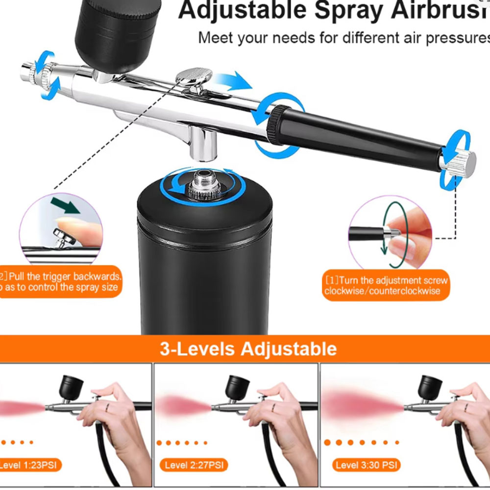 Portable Wireless Airbrush Kit with Compressor – 0.3mm Dual Action Spray Gun