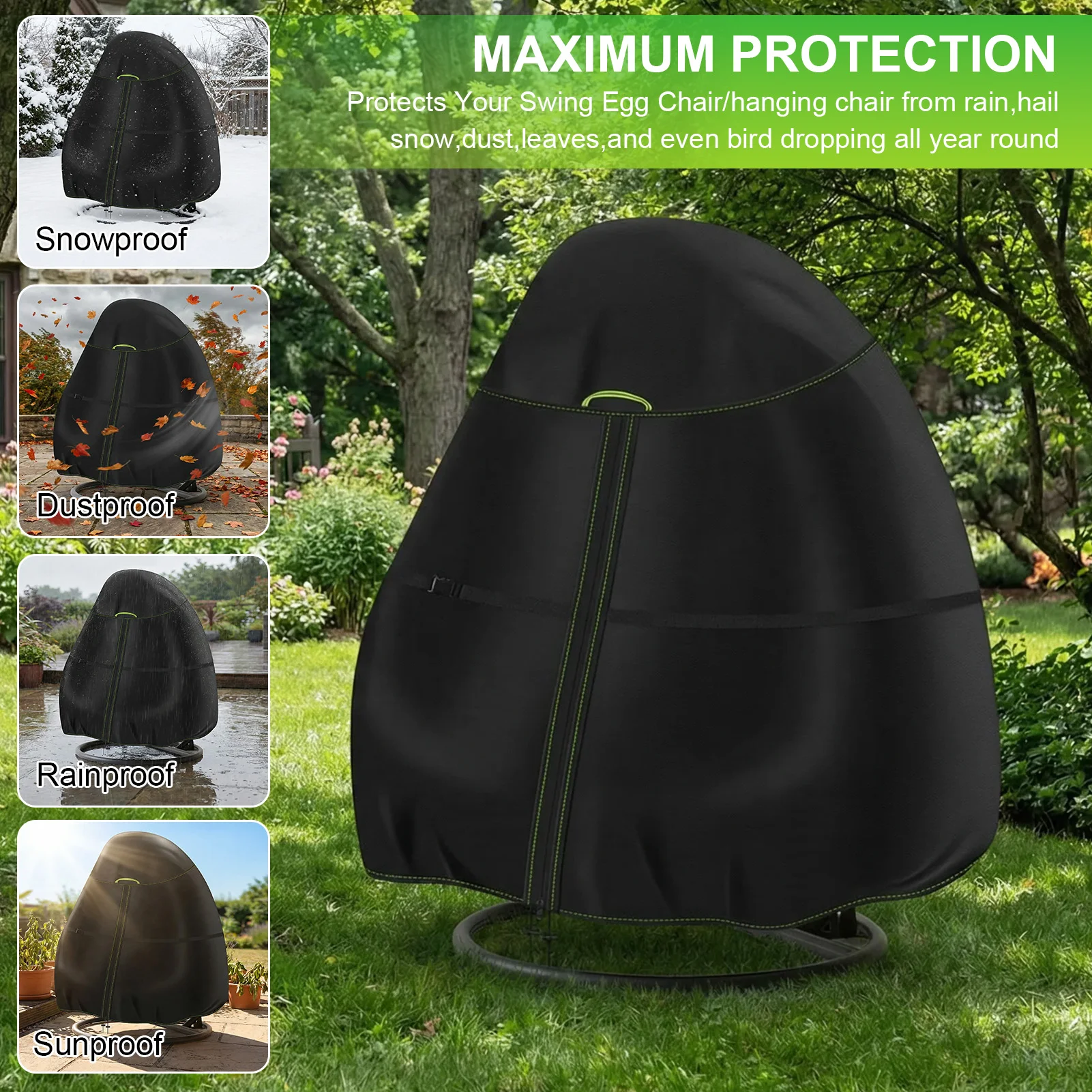 Hanging Egg Swing Chair Cover: Durable and 210D Oxford cloth with waterproof coating, dust-proof, which also can protect your outdoor egg chair from the elements such as wind, sand storms sun and rain etc.
