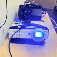Optoma GT760 short throw DLP projector in good working condition. Includes amp, speaker, and HDMI adapters. Great for home theater, gaming, or presentations. Please view photos for exact cosmetic condition and included accessories.