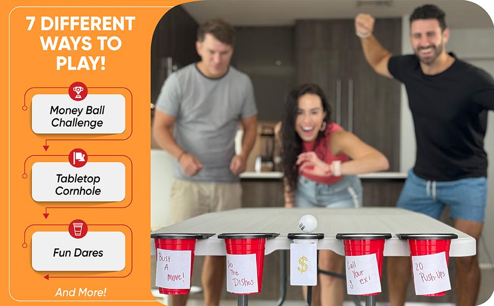 Drop Cup is the viral TikTok game brought to you by Thrilly that is guaranteed to be a hit at your next party or family game night! Transform your table or countertop into a Drop Cup arena! There are over 7 different ways to play including the viral Money Ball Challenge!