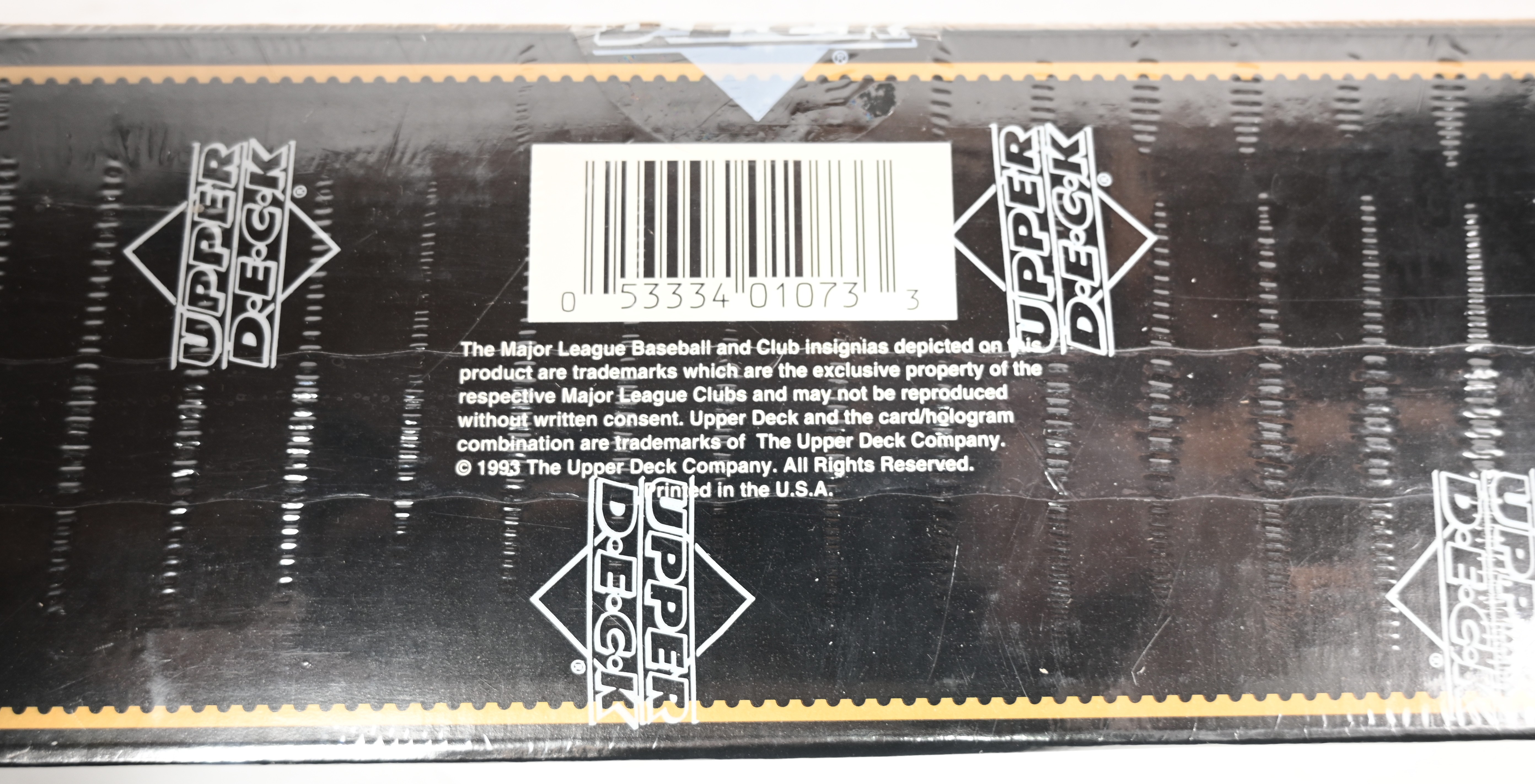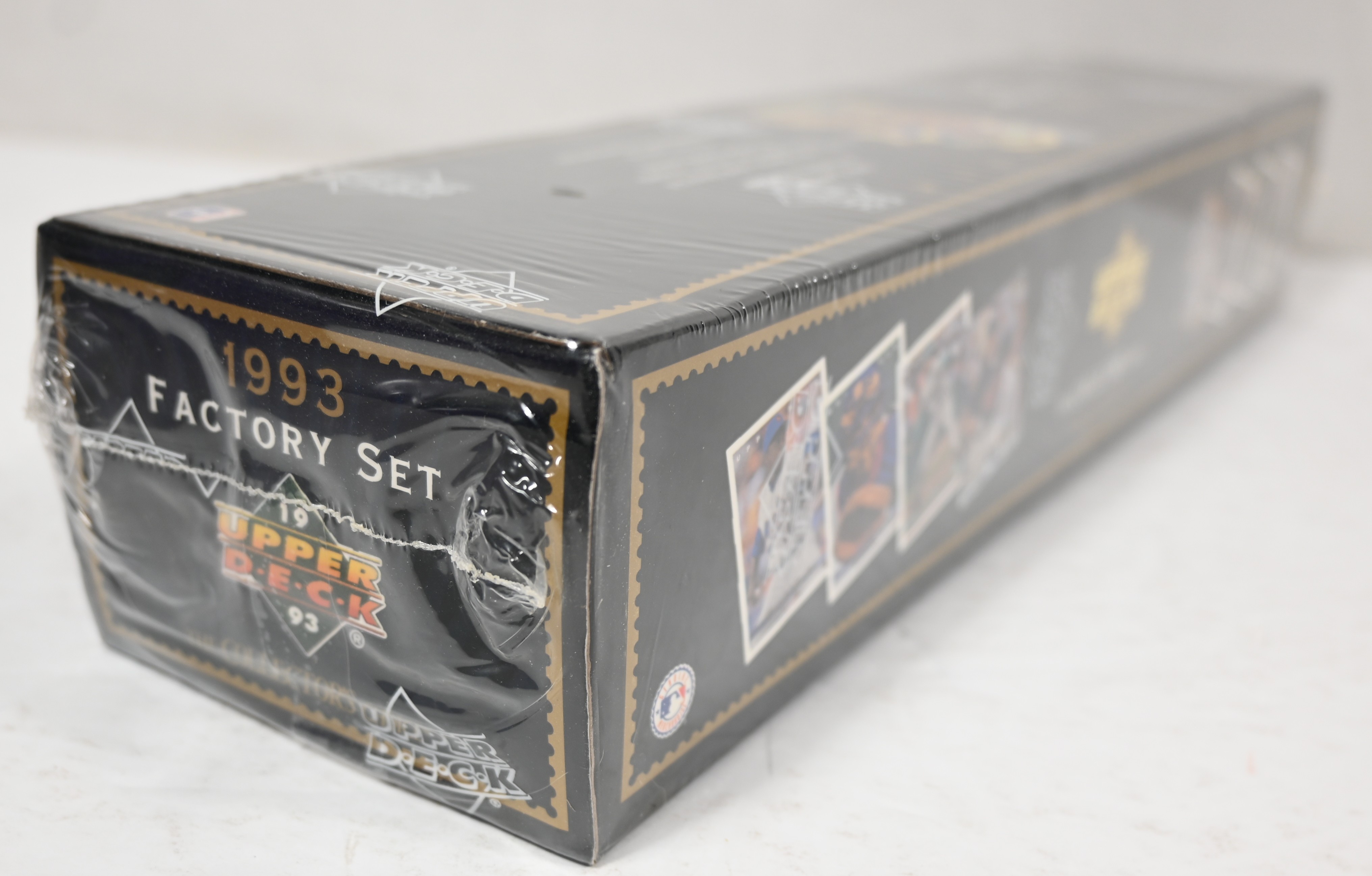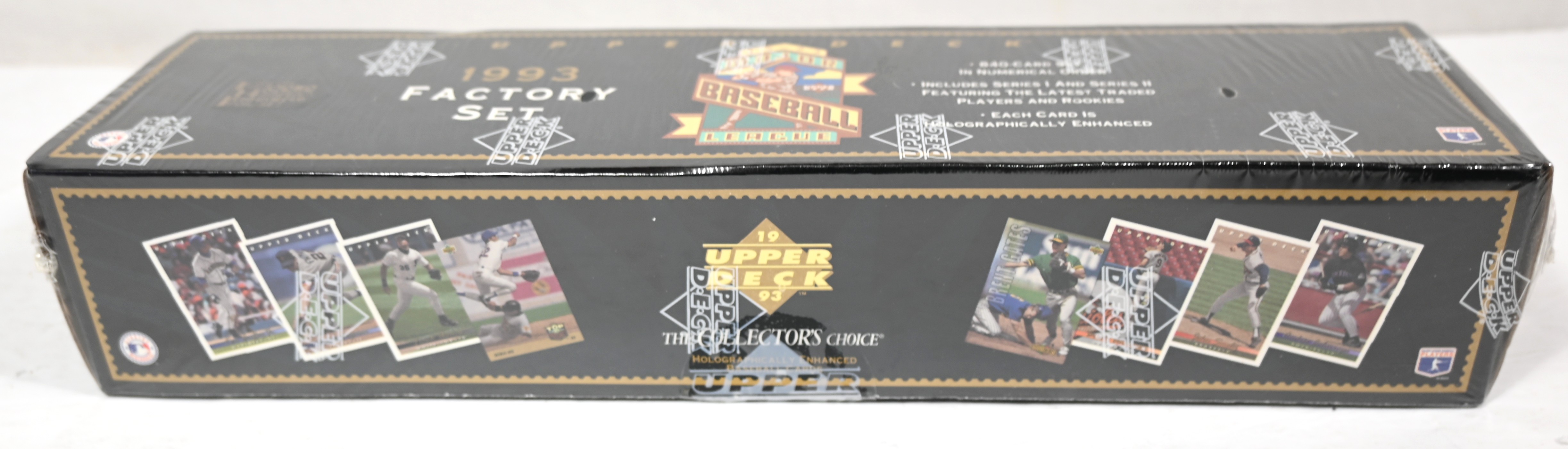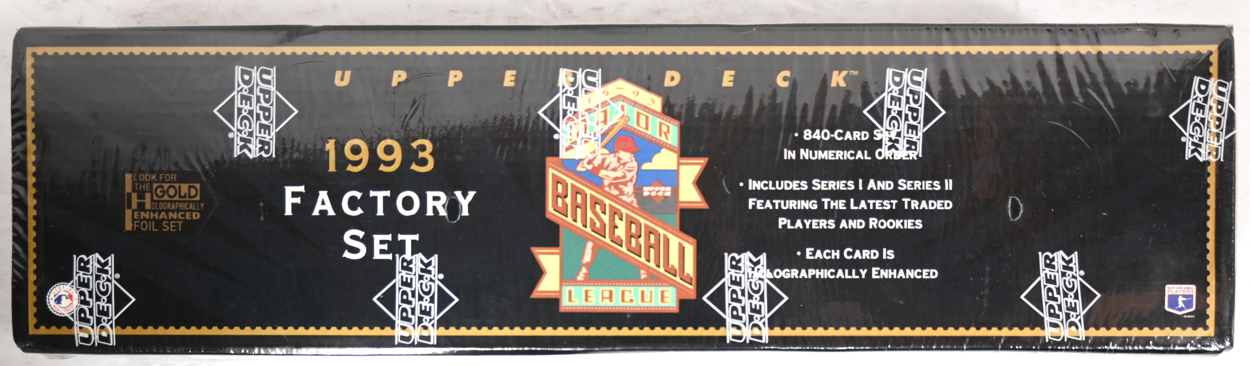 For sale here is the UPPER DECK 1993 FACTORY CARD SET of MAJOR LEAGUE BASEBALL. NEW and SEALED! Includes 840 cards in numerical order, Series 1 and Series II featuring the latest traded players and rookies. Each card is holographically enhanced. Thank you for your interest!