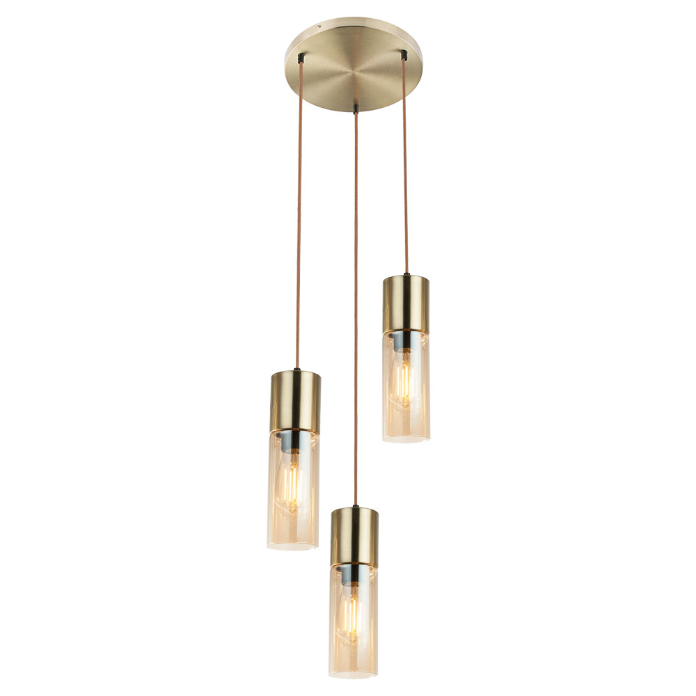 Lampada a sospensione Lampada a sospensione Lampada per cena in ottone 3 Flame Glass Amber LED H 150 cm