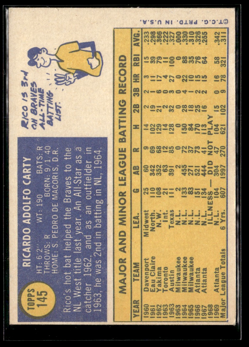 | 1970 Topps Rico Carty EX/MT Set Break #145 |