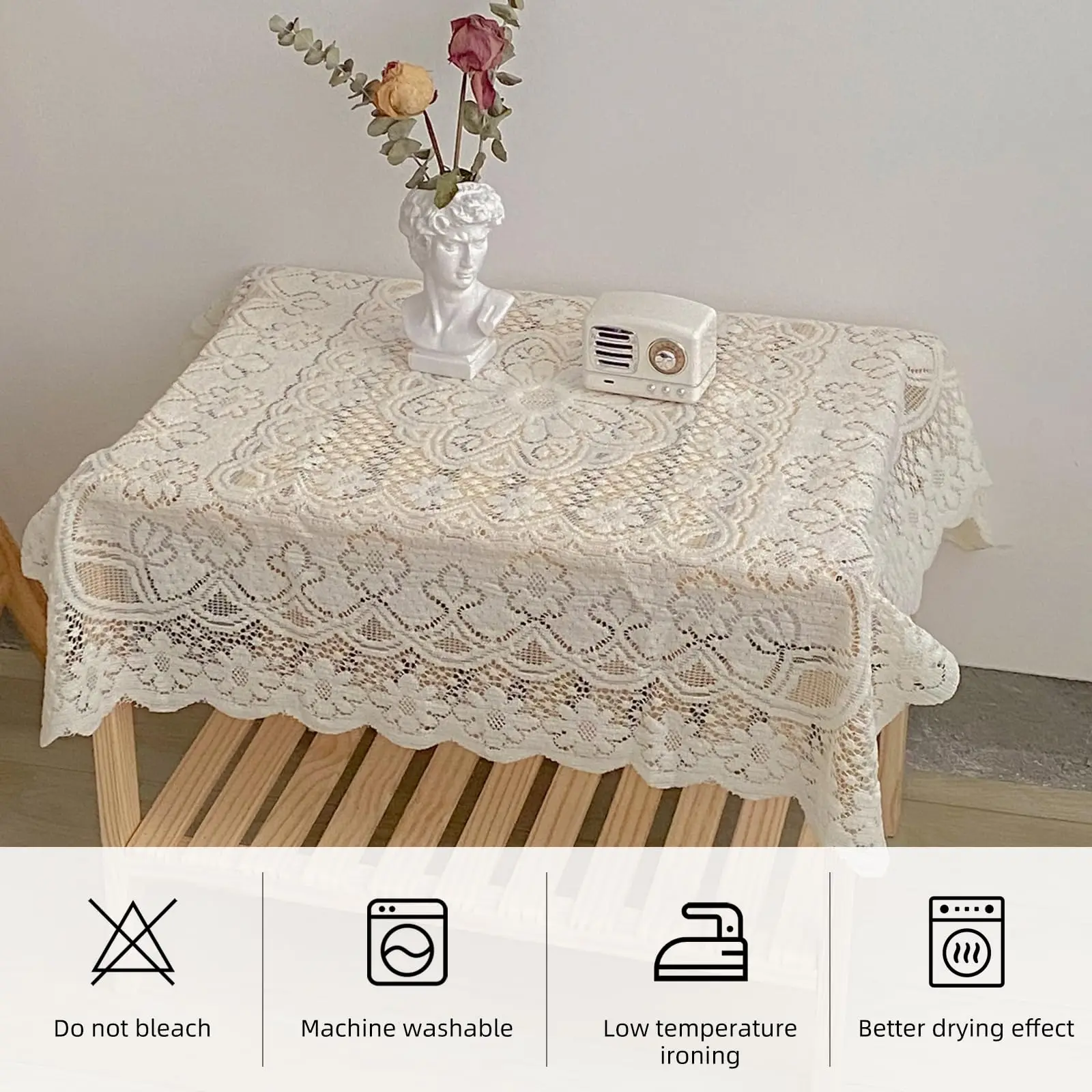 Easy Care and Maintenance: Machine washable and easy to clean, this tablecloth is designed for convenience without compromising on quality. The lace fabric retains its texture and appearance even after multiple washes, ensuring it stays beautiful for years to come.