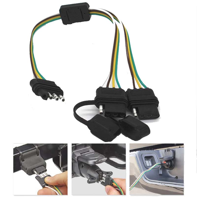 4 Way Y-Splitter Plug Universal for Tailgate Light Bar and Trailer Lights Plug & Play Adapter Extension Harness Wiring Plug 4 Pin Connectors