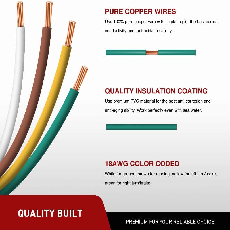 Color Coded Wires: Wires are color coded and bonded, white for ground, brown for running and license light, yellow for left stop turn and green for right stop. Easily to route into your trailer's wiring system and connect with lights.