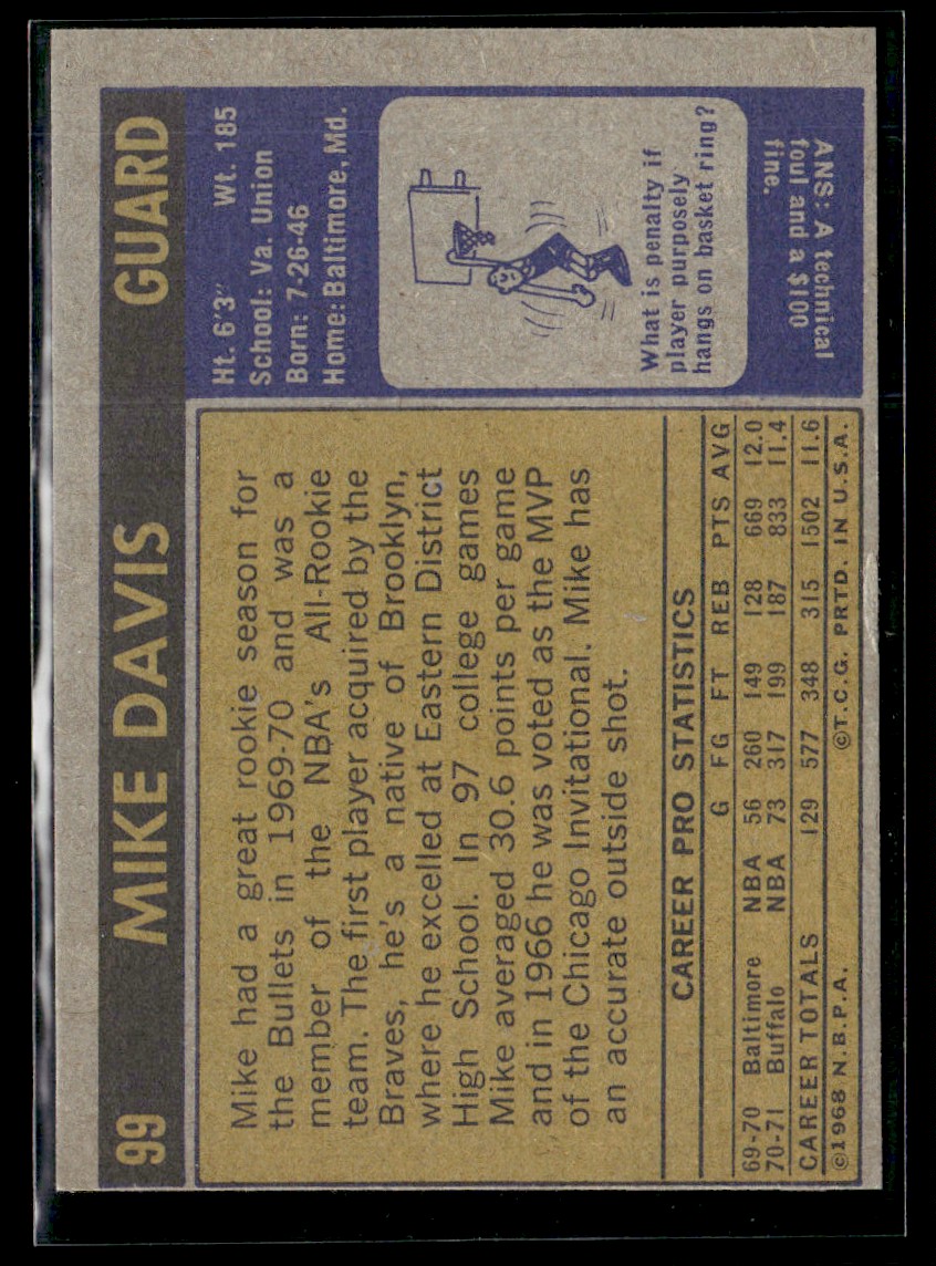 | 1971-72 Topps Mike Davis NRMT/MT Set Break #99 |