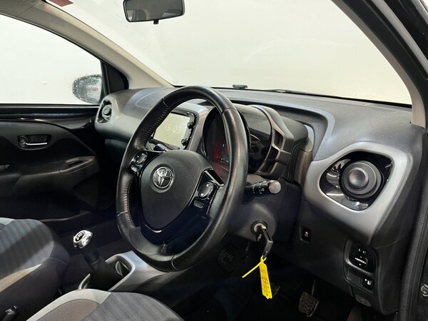 The Toyota Aygo 1.0 VVT-i x-press is a stylish and economical hatchback, ideal for city driving and low running costs. Supplied with two keys, this example benefits from a full Toyota main dealer service history recorded at 8, 16, 27, 38, 41 and 48 thousand miles, giving excellent peace of mind. Powered by the efficient 1.0 VVT-i petrol engine producing 71 PS and paired with a manual gearbox, it offers great fuel economy while remaining Euro 6 compliant. The x-press specification adds a sporty touch with alloy wheels and privacy glass, while features such as electric door mirrors and automatic lights provide everyday convenience. Inside, the cabin is well equipped with climate control, cruise control, DAB radio and Bluetooth connectivity, along with a reverse camera to make parking easy. A well-maintained and well-specified Aygo that combines Toyota reliability with modern features, making it a great choice for first-time drivers or anyone looking for affordable, hassle-free motoring. All vehicles are delivered serviced, with a full 12 months clean (NO ADVISORIES) MOT. All vehicles also come with free complimentary 12 months breakdown cover. All vehicles are supplied with a FREE 6 months warranty. An upgraded, extended 12 month warranty at reasonable additional cost is also available. P/X welcome. Please check our website for our up to date stock of over 400 cars and vans, an excellent selection is always available..privacy glass + alloy wheels , electric door mirrors + climate control , automatic lights + DAB radio , bluetooth + two keys , reverse camera + cruise control , 15in Alloy Wheels - 10 Spoke - Gloss Black, 3-Spoke Leather Steering Wheel, 7in x-touch Multimedia System, ABS - Anti Lock Braking System, Adjustable Rear Headrests, Auto Headlights, Bluetooth Connectivity, Chrome Insert on Gear Shift, Chrome Inside Door Handles, Clean Air Filter, Climate Control, Cupholder - Front and Rear, DAB Digital Radio, Daytime Running Lights - LED and Rear LEDs, Door Handles - Body Coloured, Door Mirrors - Body Colour, Electric Front Windows, Electric Power Steering - EPS, Electrically Adjustable Heated Door Mirrors, Emergency Brake-Light Signal - EBS - Hazard Type, Front 12V Power Outlet, Front Fog Lights, Front Passenger Airbag On-Off Switch, Front Seat Belt Reminder, Glovebox, HAC - Hill Start Assist Control, Headlights - Electronic Levelling, ISOFIX Fixing Points, Instrument Panel - Body Coloured, Integrated Rear Spoiler, Leather Gear Shift, Manual Rear View Mirror, Manual Tilt Steering Wheel, Projector Halogen Headlight with LED Tracer Lights, Rear Headrests x2, Rear Privacy Glass, Rear Seat Belt Reminder, Rear Window Demister, Recline and Slide Adjustment - Driver and Front Passengers, Red Outburst Kit with Red Roof Decal, Reversing Camera, Seat Belt - Pre-Tensioners and Force Limiters, Seats - 50-50 Split Folding Rear, Seats - Drivers Height Adjustment, Steering Wheel - Audio and Telephone Controls, Storage - Front Door Pockets, Storage - Rear Door Pockets, Storage Pocket in Central Console, Supplemental Restraint System - SRS - Airbags - 6 Airbags, Tonneau Cover, Tyre Pressure Warning System, Tyre Repair Kit, USB Connection, VSC - Vehicle Stability Control