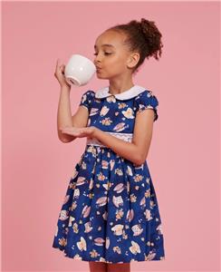 NEW Girls "NAVY TEACUP PRINT" Smocked Dress Size 4T