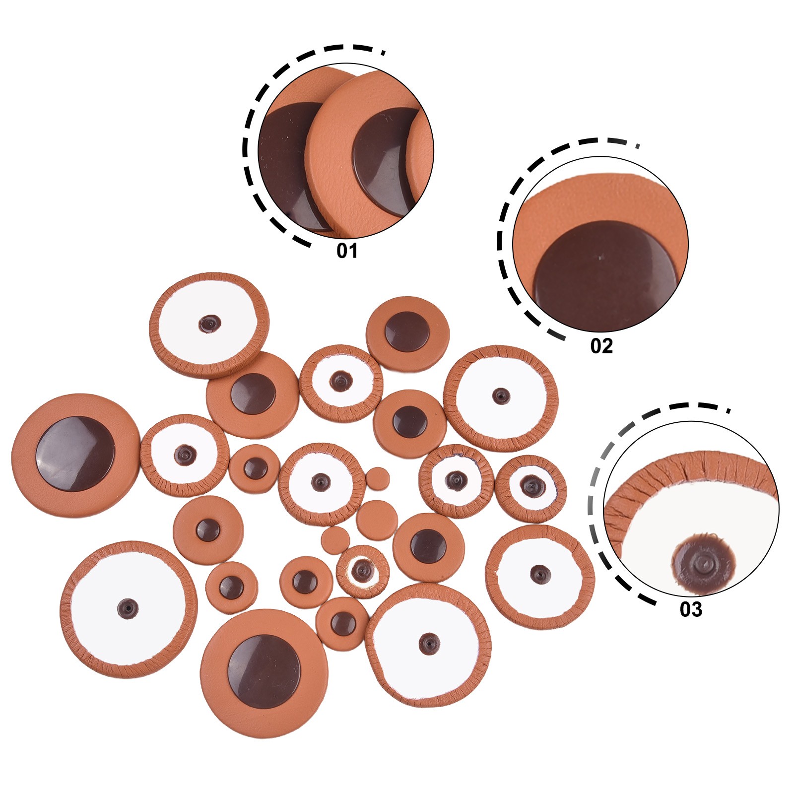 Sax Leather Pads 25PCS Eb For Alto Saxophone Replacement Brown 14 Sizes
