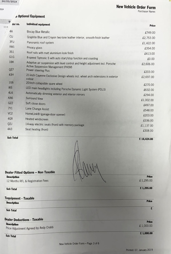 Porsche Cayenne 3.0T V6, 4WD, Automatic, petrol, S S Euro 6, in Biscay blue metallic £749, with Graphite blue and crayon full smooth leather seats £2753, heated seats £308. electric memory seats, monochrome black high gloss interior and black roof lineing, upgrades include panoramic glass sunroof with electric sun blind £1422, 14 way electric seats with memory £1137, 21 Cayenne exclusive design alloys £2697 on premium matching tyres with locking wheel key, park assist front and rear with surround view £1002, lane change assist £548, soft close doors £495, roof rails with matt aluminium finish £413, factory privacy glass £354, heated windscreen £336, 20 collapsible spare wheel £270, auto dimming exterior and interior mirrors £294, homelink garage door opener £203, power steering plus £203. adaptive air suspension with level control and height adjustment including Porsche active suspension management PASM £2606, LED main head lamps including Porsche Dynamic light system £632 and 4 point day time running lights, DAB radio with connect plus, hifi sound system with 10 speakers, integrated 4G LTE, compatible sim, 2 x usb ports, Porsche communication management including on line navigation module, electric windows with heated electric power folding mirrors, keyless start stop, Multifuntion sports leather steering wheel with paddle shift option, on board computer voice recognition blue tooth hands free phone system and cruise control with speed limiter, Porsche traction control, Porsche hill control, Porsche stability control, multi collision brake assist, integrated 4D chassis control, front and rear premium carpet mats. This is a one elderly Ladynowner in exceptional condition which has if anything been over serviced having had 7 services, last serviced 12 12 2025 at 62483 miles, Mot to 02 12 2026 with no advisories ever. Supplied with both keys, Owner s book pack and wallet, locking wheel key, Free HPI report available on request, Extendable warranties available, Minimum of 6 months Mot on all cars, Safety check and pre delivery inspection, Low rate finance options are available, call for details. Subject to Status. Part Exchange Welcome, Finance Arranged. Buy with confidence all our cars are HPI checked, safety checked and come fully professionally valeted. 12 24 or 36 month WARRANTIES available. Viewing Any Day Time by appointment or for more photos and information. We do not operate an organised distance sales scheme. We have only