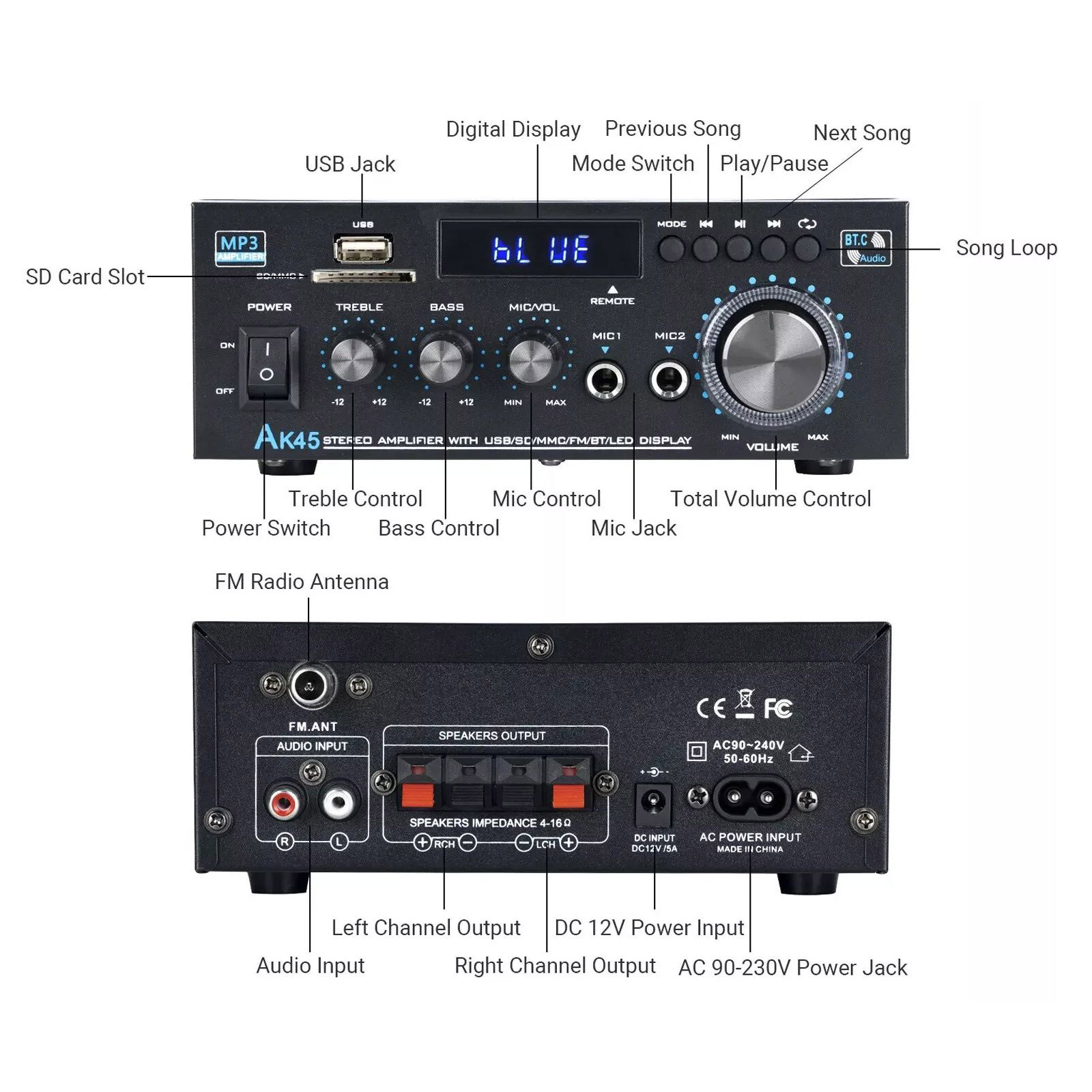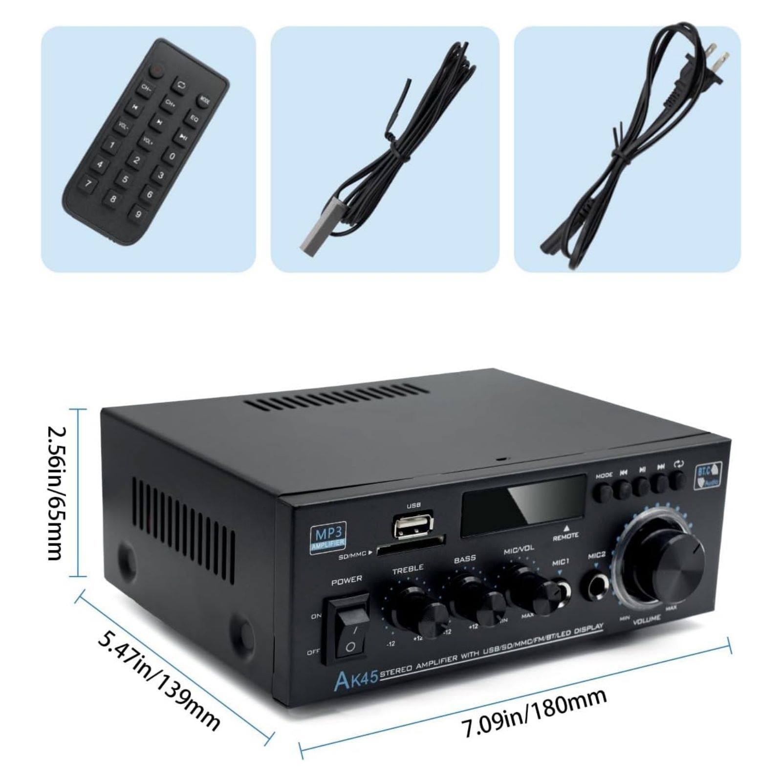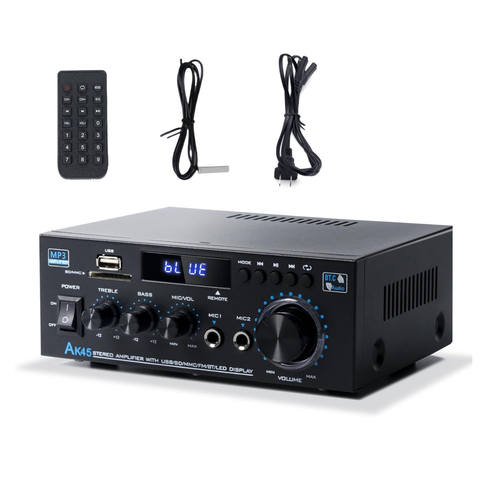 Precision Sound Control: Fine-tune your audio experience with adjustable volume, treble, and bass control knobs. Plus, a remote controller allows for convenient audio adjustments from afar.