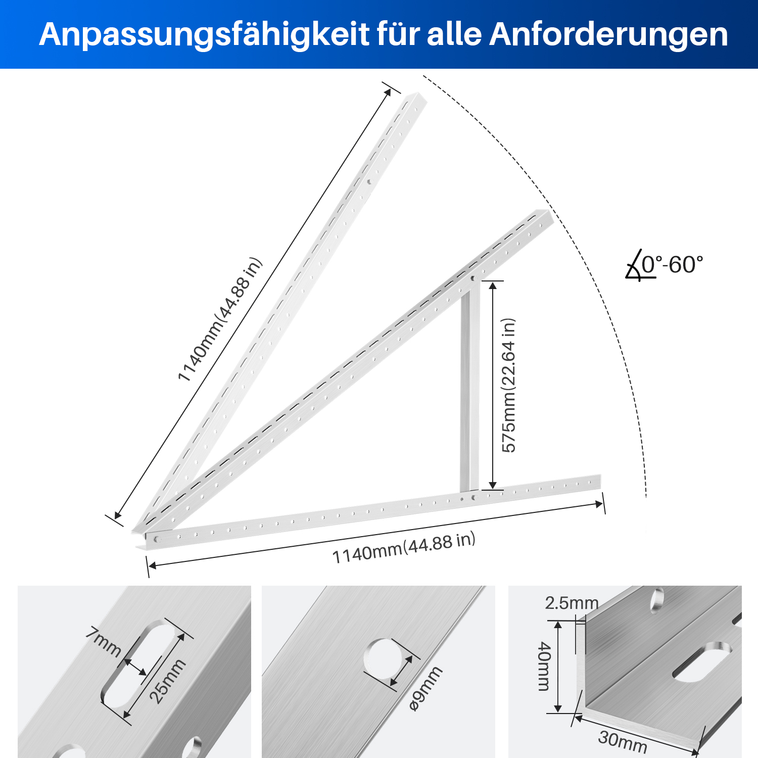 Einstellbarer Winkel des Solarpanels: 0~60°