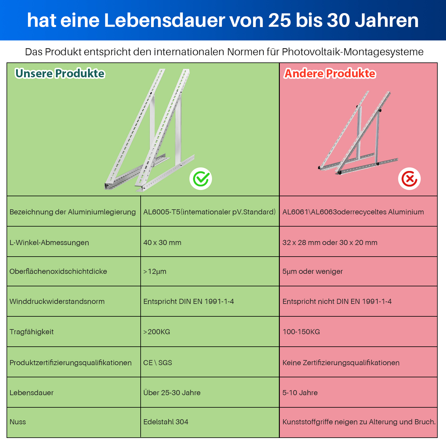 Einfache Installation: Schnelle Installation mit Edelstahlverschlüssen und präziser Lochplatzierung. Es kann für die meisten Marken von Sonnenkollektoren verwendet werden. Einfach zu reparieren und zu installieren.