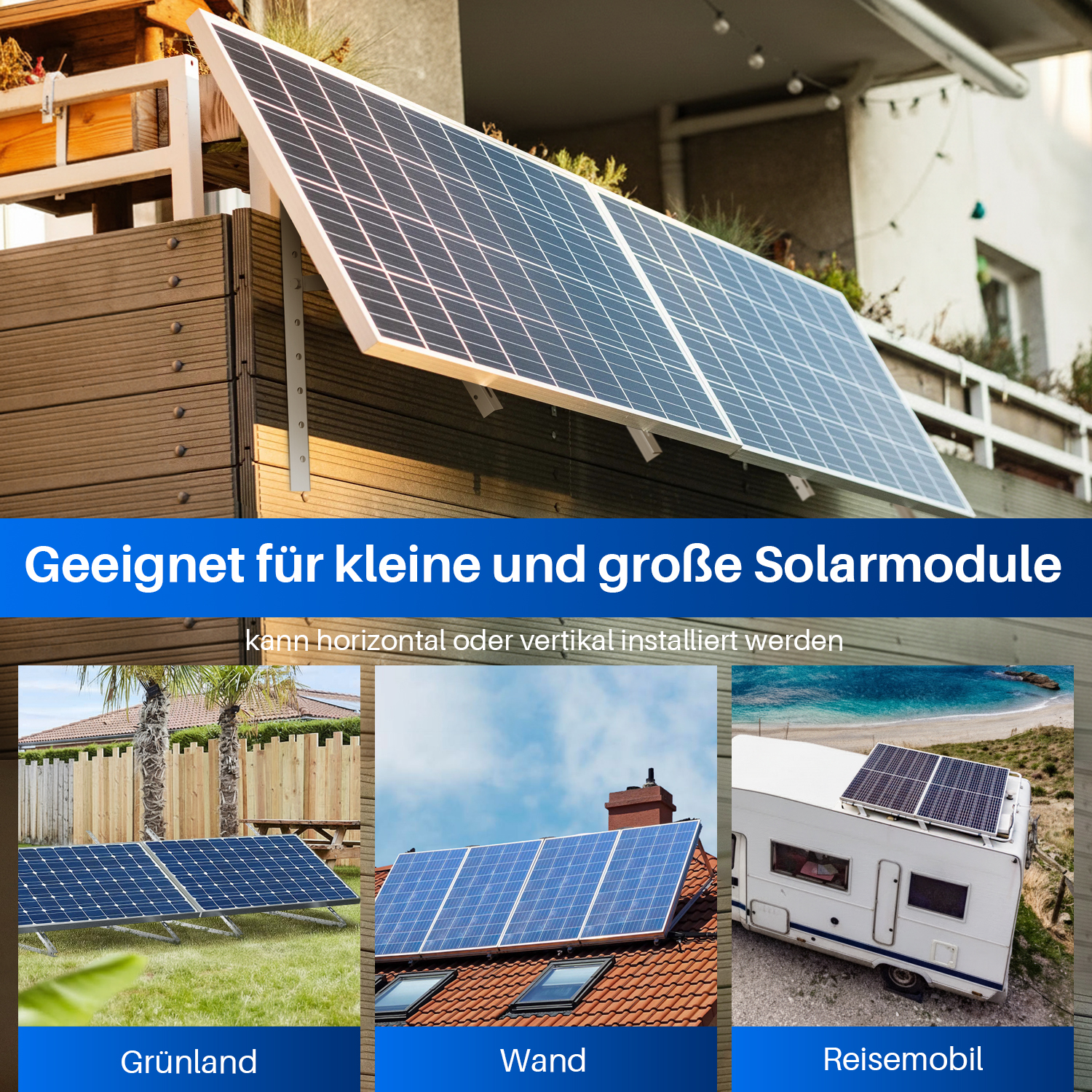 Anwendung: verstellbare Solarmodulhalterungen für netzunabhängige Solarsysteme wie Wohnmobile, Boote, Dächer, Schuppen oder andere flache Oberflächen.