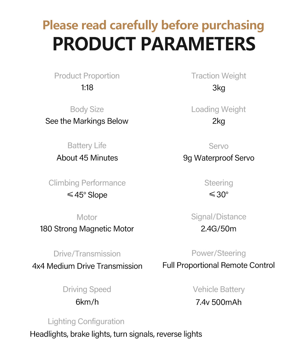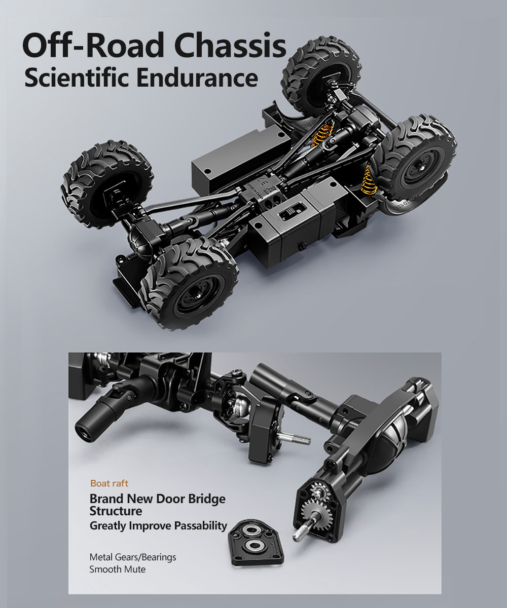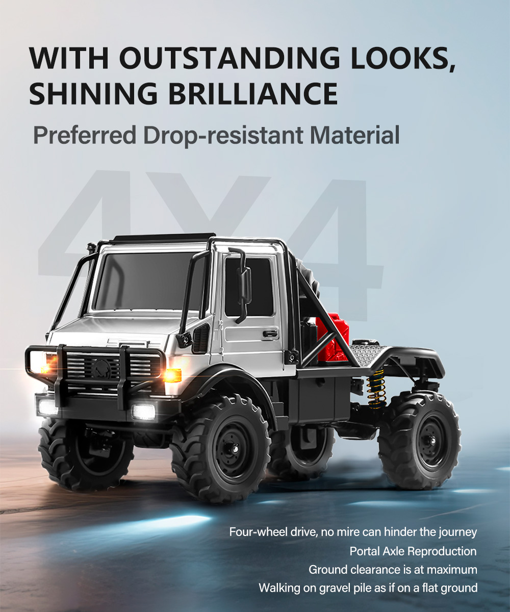 Equipped with a powerful 4WD drive system and high-quality rubber tires, this crawler RC can conquer rocky and uneven surfaces effortlessly.