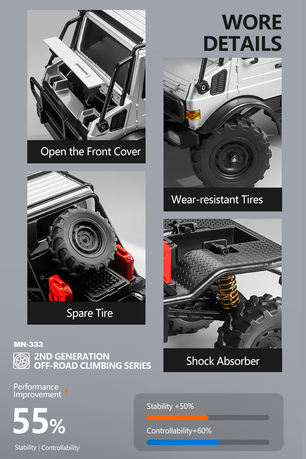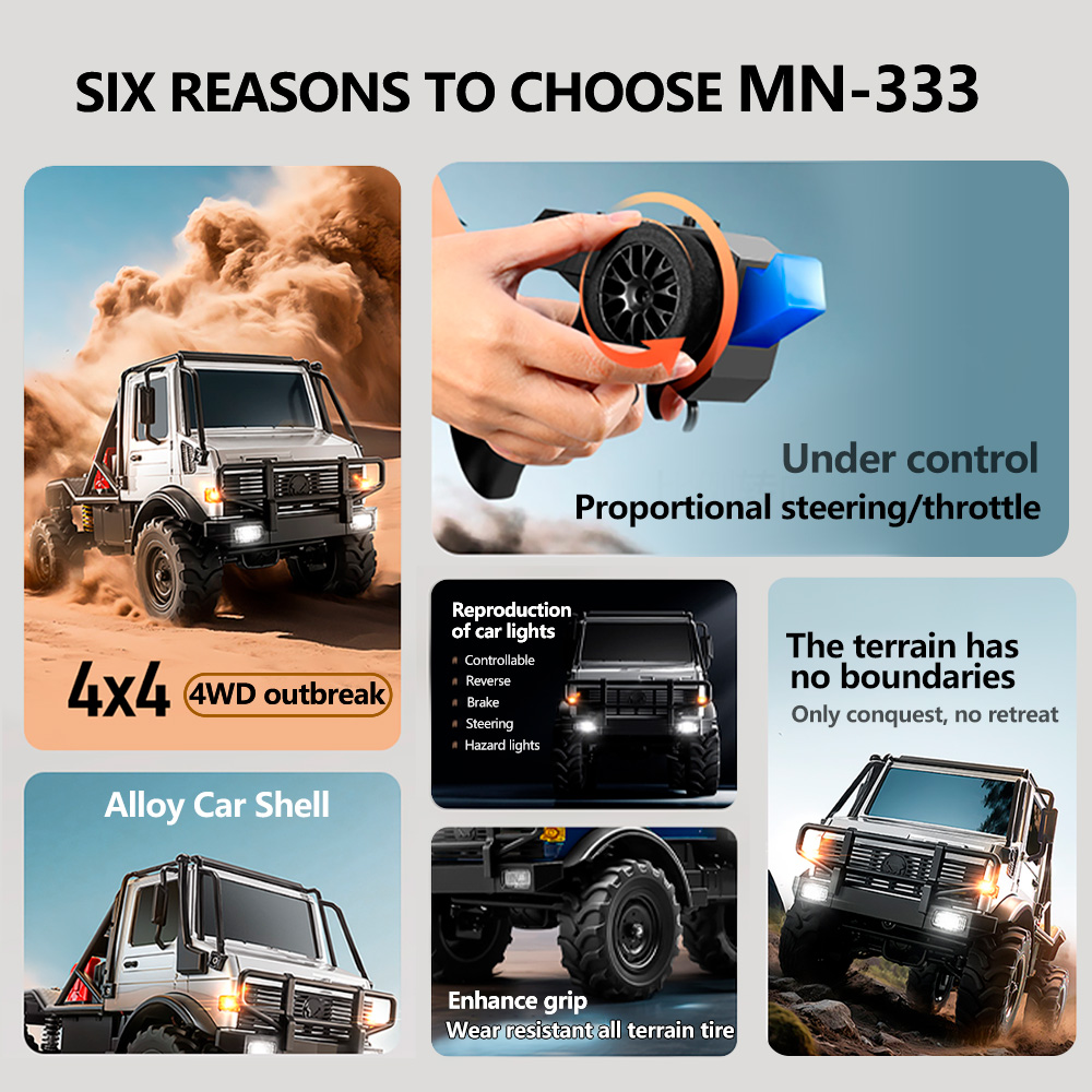 MN MODEL MN333 RC Car 1/18 RC Rock Crawler Alloy Car Shell Four-wheel Drive with Spare Tire Remote Control Truck All Terrain Off-Road Vehicle