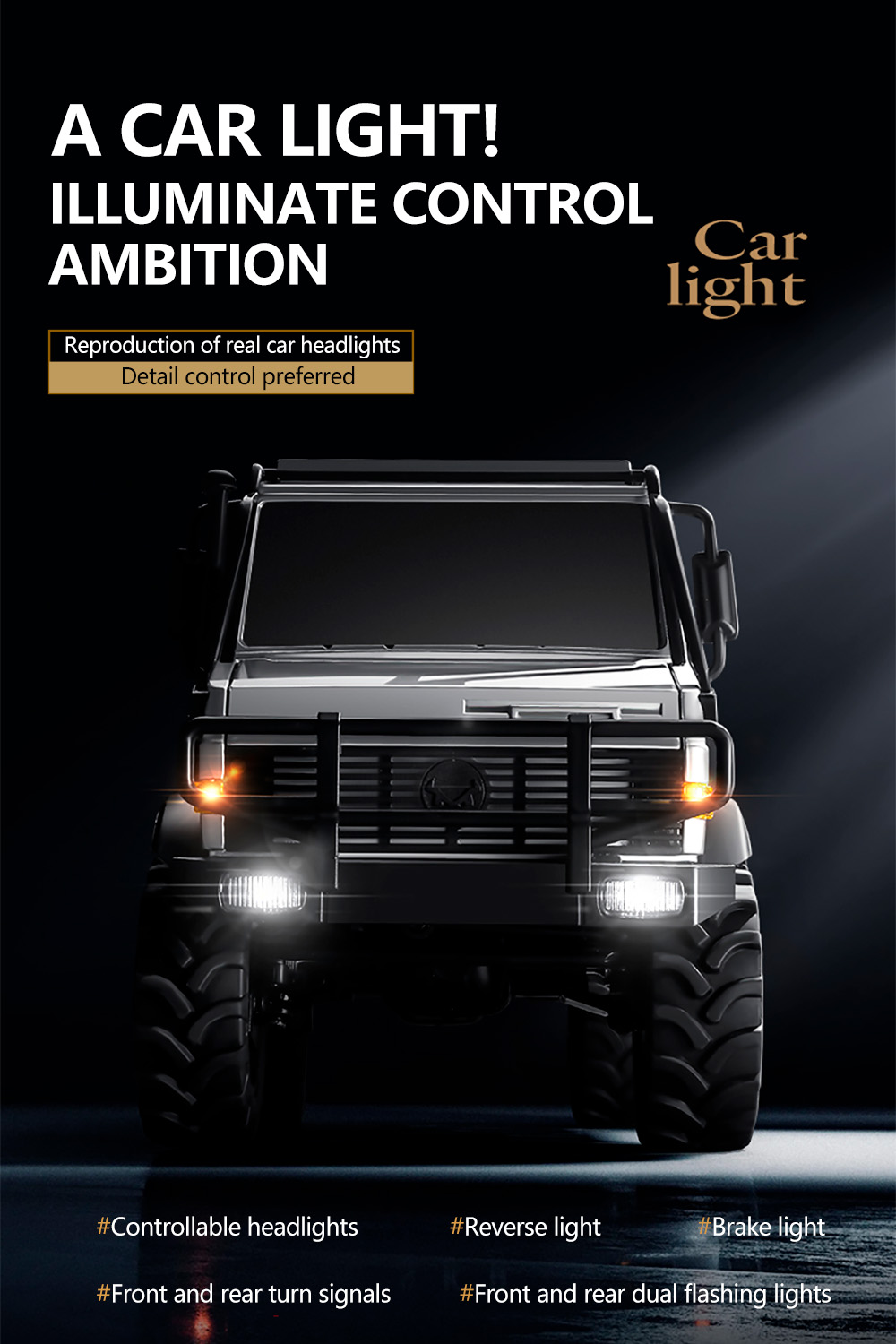 4. Dynamic Lighting Features, With controllable headlights, reverse lights, brake lights, and