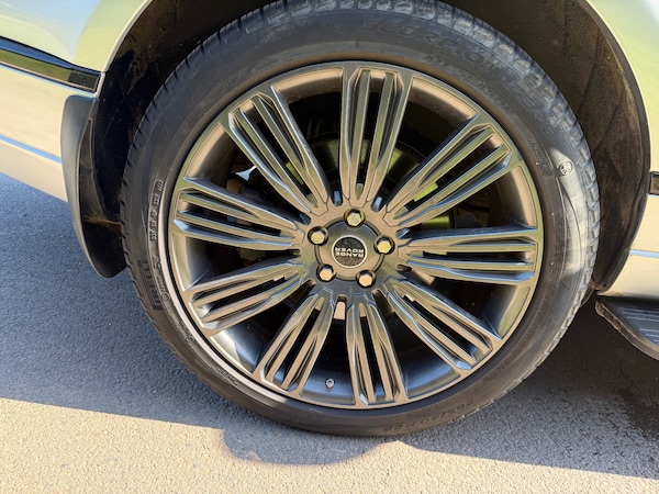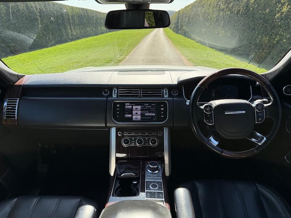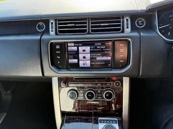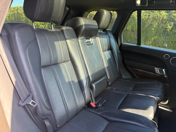 3 rear 3 point seatbelts, Auto lock system when vehicle in motion, Driver and passenger airbags, Driver/front passenger head+thorax airbag, Drivers knee airbag, Front seatbelt pretensioners with force limiters, Front side airbags, Immobiliser, Keyless entry, Locking wheel nuts, Perimetric and volumetric anti theft alarm, Remote central locking, Anti-lock brake system, Cornering brake control (CBC), DSC - Dynamic Stability Control, Electronic Brakeforce Distribution + Brake Assist, Electronic parking brake, Electronic Stability Programme, Electronic traction control, Hill descent control, Roll stability control, Diesel particulate filter, Adaptive dynamics, Electronic air suspension/variable ride height, Terrain Response, Automatic dimming rear view mirror, Body colour mirror caps, Electric heated, adjustable, folding and auto dimming door mirrors with memory + approach lamps, Acoustic windscreen, Electric windows with one touch open, Heated windscreen, Rain sensor windscreen wipers, Rear wiper, Body coloured bumpers, Metallic paint, Tread plates with RR lettering, Twin exhaust tailpipe, Automatic headlamp activation, Follow me home headlights, Xenon headlights with LED signature lights + auto levelling and power wash, Trailer stability assist, Front and rear head restraints, Front seat back map pockets, Isofix child seat preparation, Figured macassar veneer, Front + rear carpet mats, Luggage compartment lighting, Illuminated driver/passenger vanity mirrors, 12V accessory sockets - front and rear, 12V power point in luggage area, Centre cooler storage box, Electric adjustable steering column, Front and rear cupholders, Front centre armrest, Front centre console storage box, Heated leather steering wheel, Loadspace cover, Luggage net, Morzine headlining, Multi function steering wheel, Oxford leather upholstery, Rear centre armrest with storage compartment, Through load facility, 3 zone climate control, Power tailgate, Push button starter, Cruise control, Dynamic response, Electronic power assisted steering, Park distance control, Rear view camera, Dynamic route guidance, HDD Navigation system, Service interval indicator, Trip computer with selectable speed limit warning, Personal telephone integration with Bluetooth and voice recognition, Bluetooth audio streaming, DAB Digital radio, Digital TV, Meridian 380W audio system, USB connection, 20" 5 split spoke alloy wheels style 2, Space saver spare wheel
