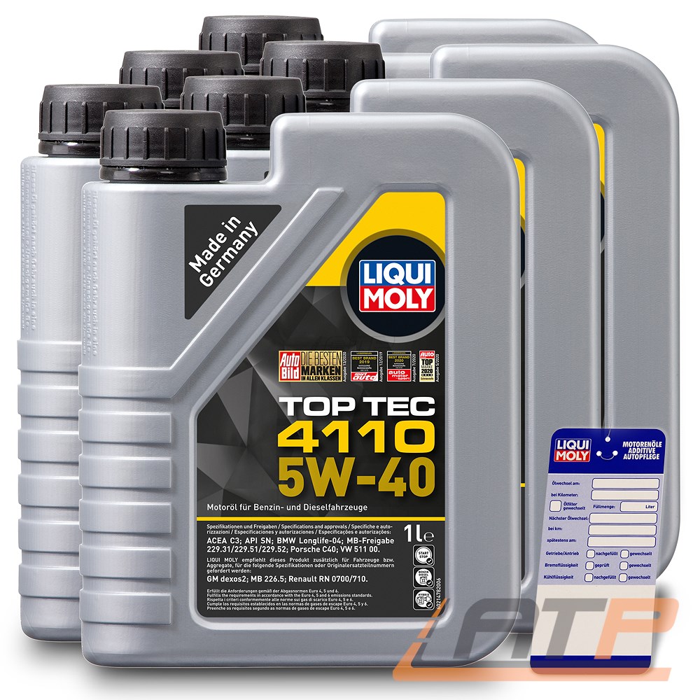 LIQUI MOLY 6x 1 L TOP TEC 4110 5W-40 + Ölwechsel-Anhänger