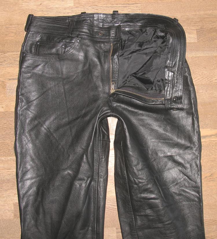 (0922/115) schwarze Lederjeans aus echtem, stabilem Glattleder hergestellt, in ca. W33"/L32-33" bzw. ca. Herrengr. 48-50 zu kaufen. 50 steht drin. Bitte unbedingt die folgenden Maße beachten: Bundumfang ca. bis 85cm, Hüftumfang bis ca. 98cm, Außenlänge ca. 106cm, Beininnenlänge ca. 81cm. Zustand: getragen und ordentlich erhalten mit normalen Gebrauchsspuren, siehe Bilder. Für Lederkerl Biker Szene etc. Zugreifen - lohnt sich bestimmt!!! KOMBIVERSAND WIRD ANGEBOTEN! SEHT AUCH MEINE ANDEREN ARTIKEL BEI EBAY MIT VIELEN LEDERHOSE (N) ODER LEDERJEANS!!! INTERNATIONAL BIDDERS FOR THIS LEATHER PANTS / CUIR PANTALON / ARE WELCOME!!!