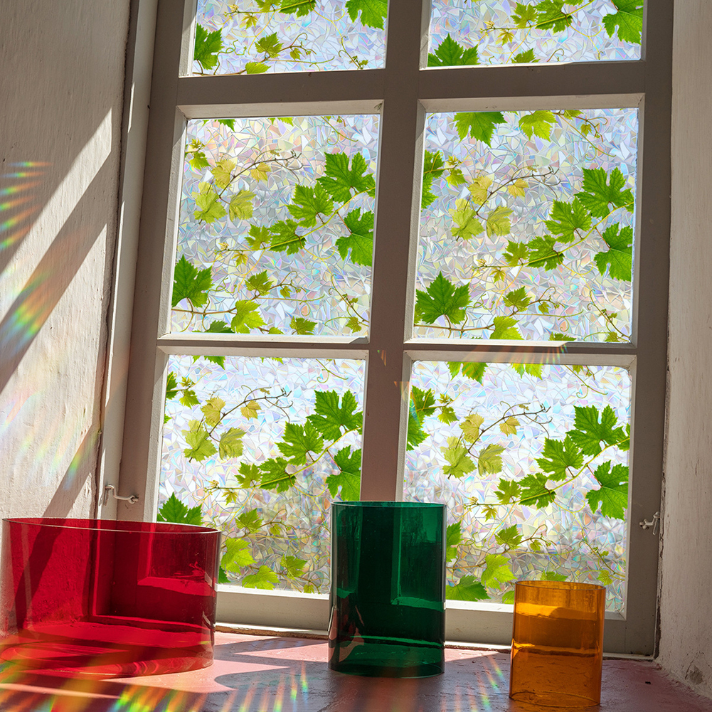 Important Fact to Know: The decorative window film itself does not actually have any color. However, with special 3D laser design it will show a colorful visual effect when sunlight hits the privacy film after installation; Please spray a lot of water both on the window surface and privacy film back during installation for effective attachment