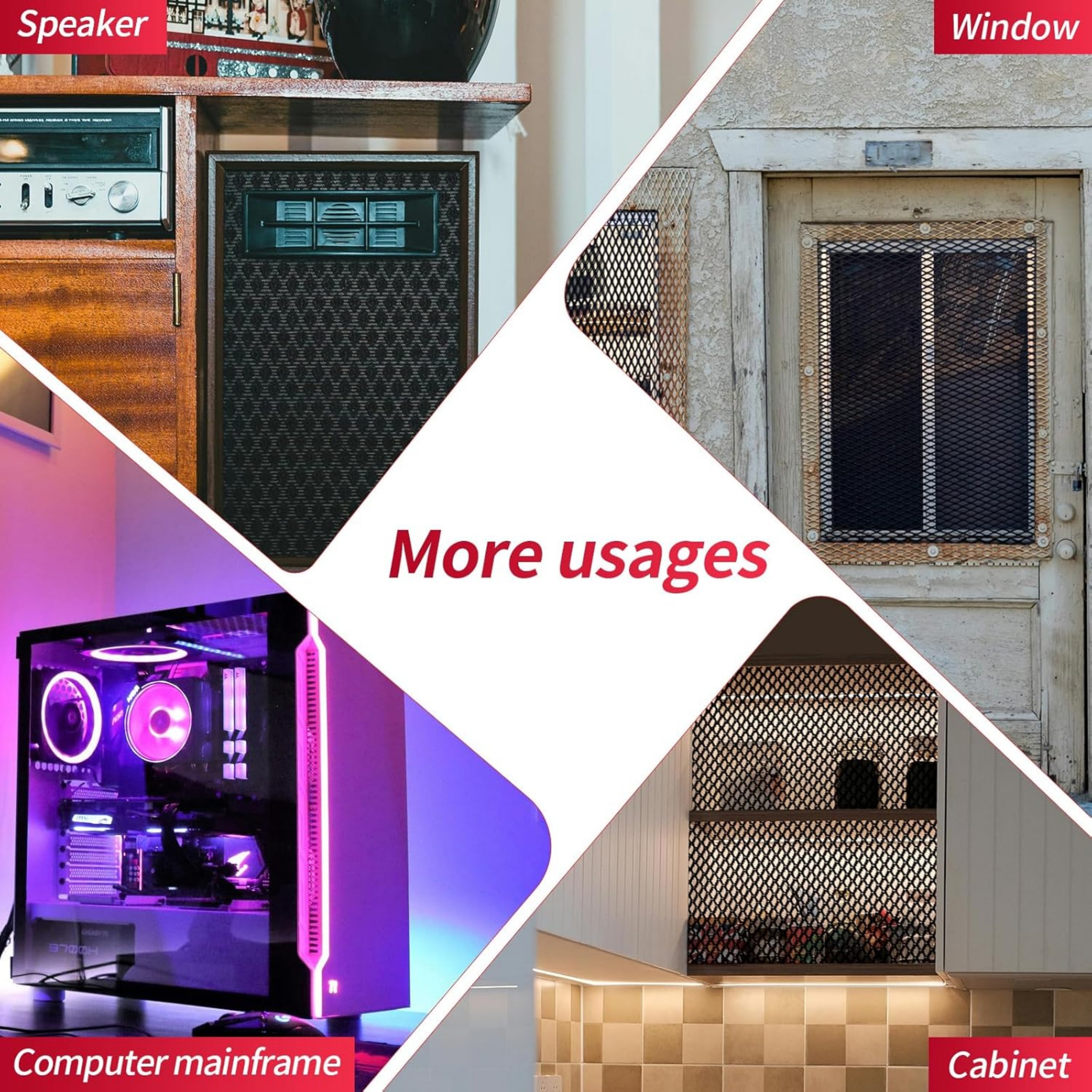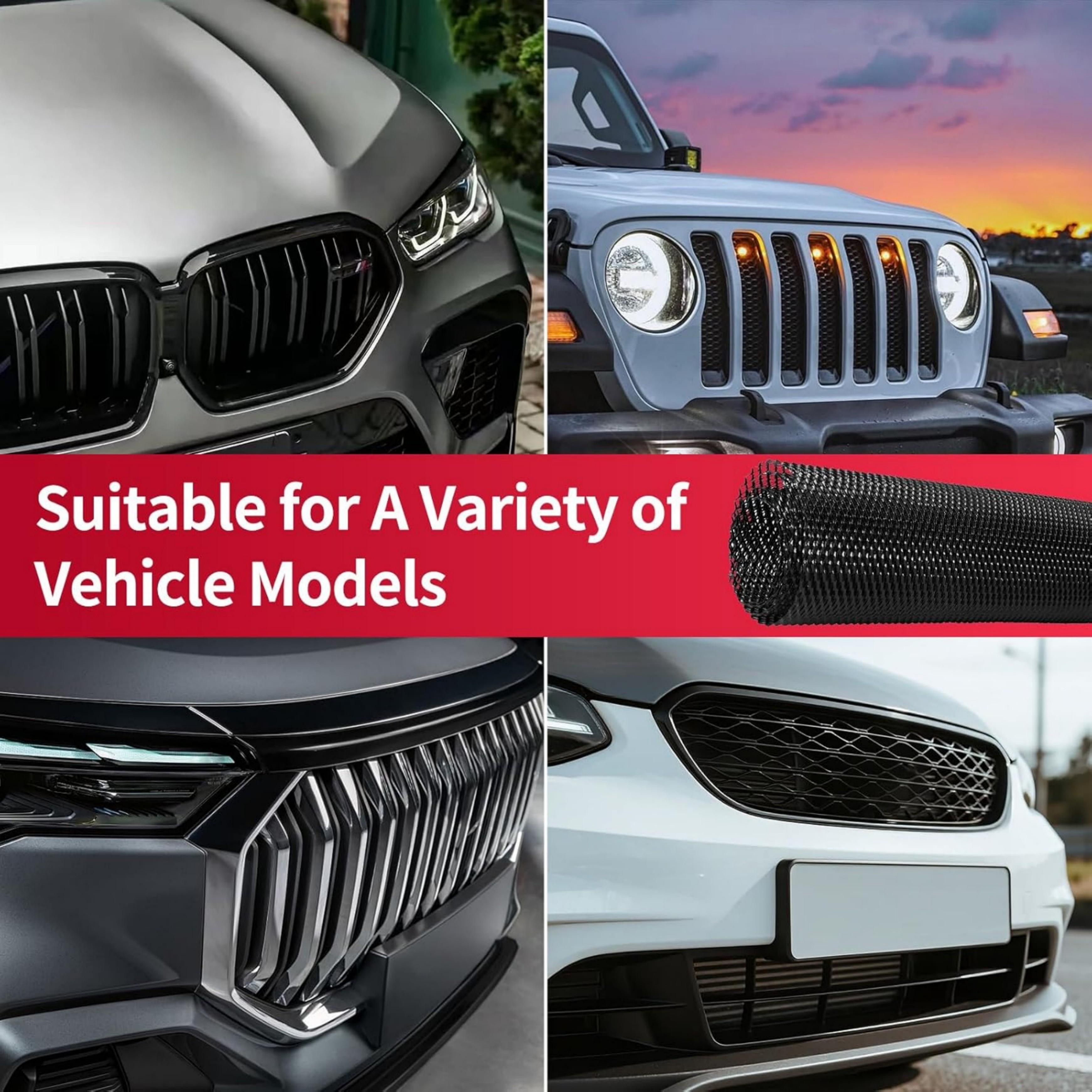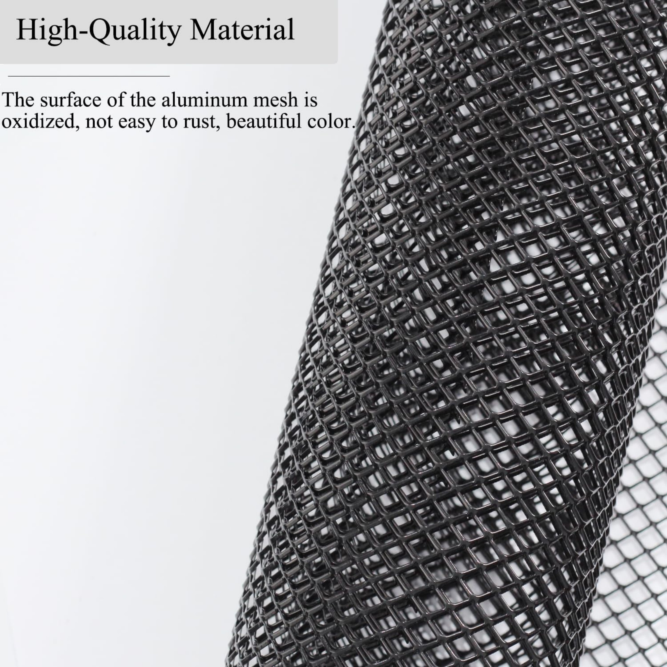 Premium Material: The car mesh grille honeycomb is made of aluminum, soft but durable, easy to cut and install.Dimension: The size of grill mesh is 40"x13", Each mesh grid size is 6mmx12mm/0.23inx0.47in,please ensure the size what you need before payment.Protection: The grille mesh sheet can prevent small items from damaging intercooler, radiator, and engine bay, such as road rocks, debris, garbage, leaves.Installation: You can install the car mesh grill on the place you need, like any bumper, body kit, mudguard, hood vent, vehicle opening, etc.(prepare cutting tools by yourself)Package Included: There are 1 black grille meshes in the package, the black color is Elegant black, definitely make your car look better.