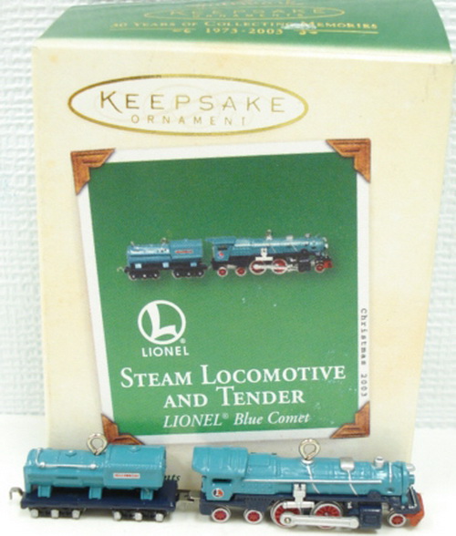 This is a Hallmark 4887 Miniature Lionel Blue Comet Steam Locomotive & Tender Collector's Ornament.