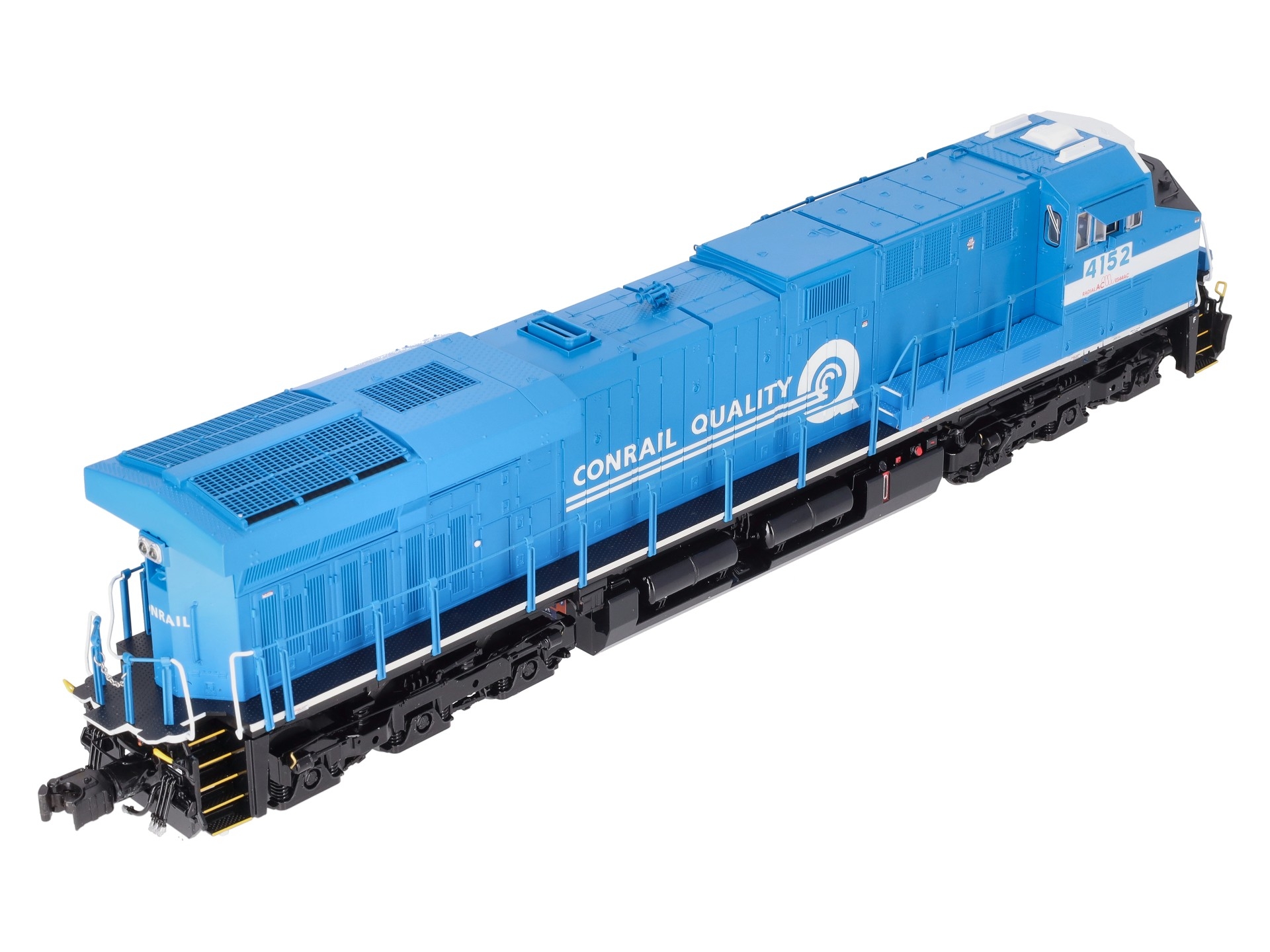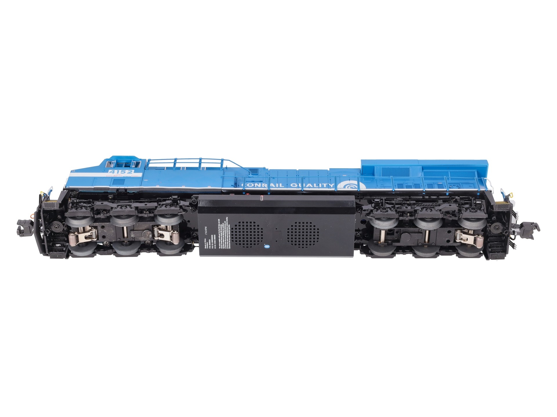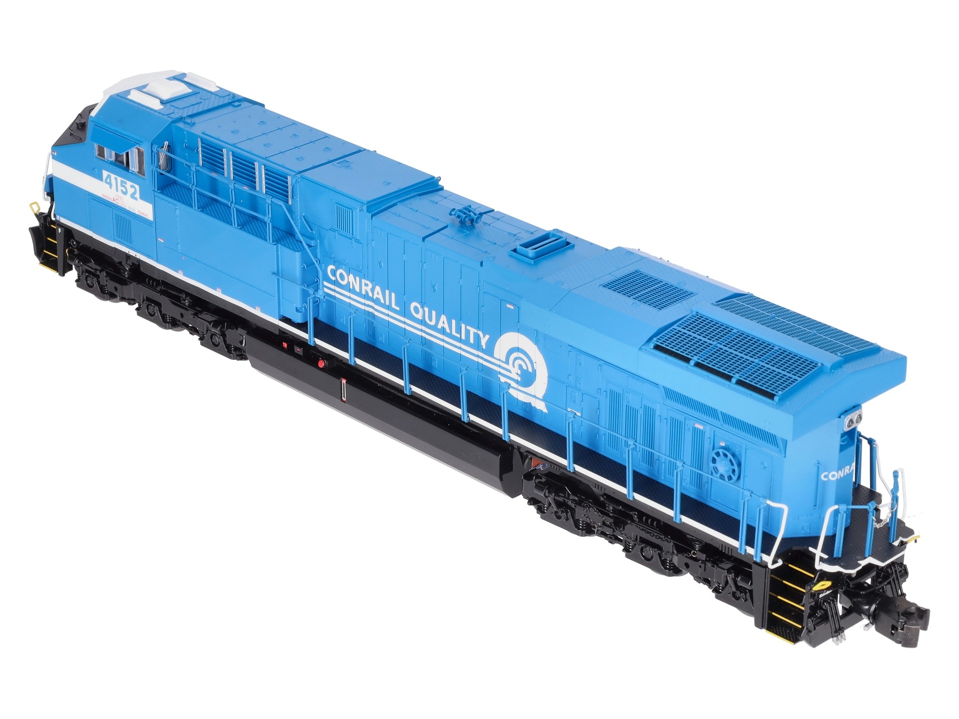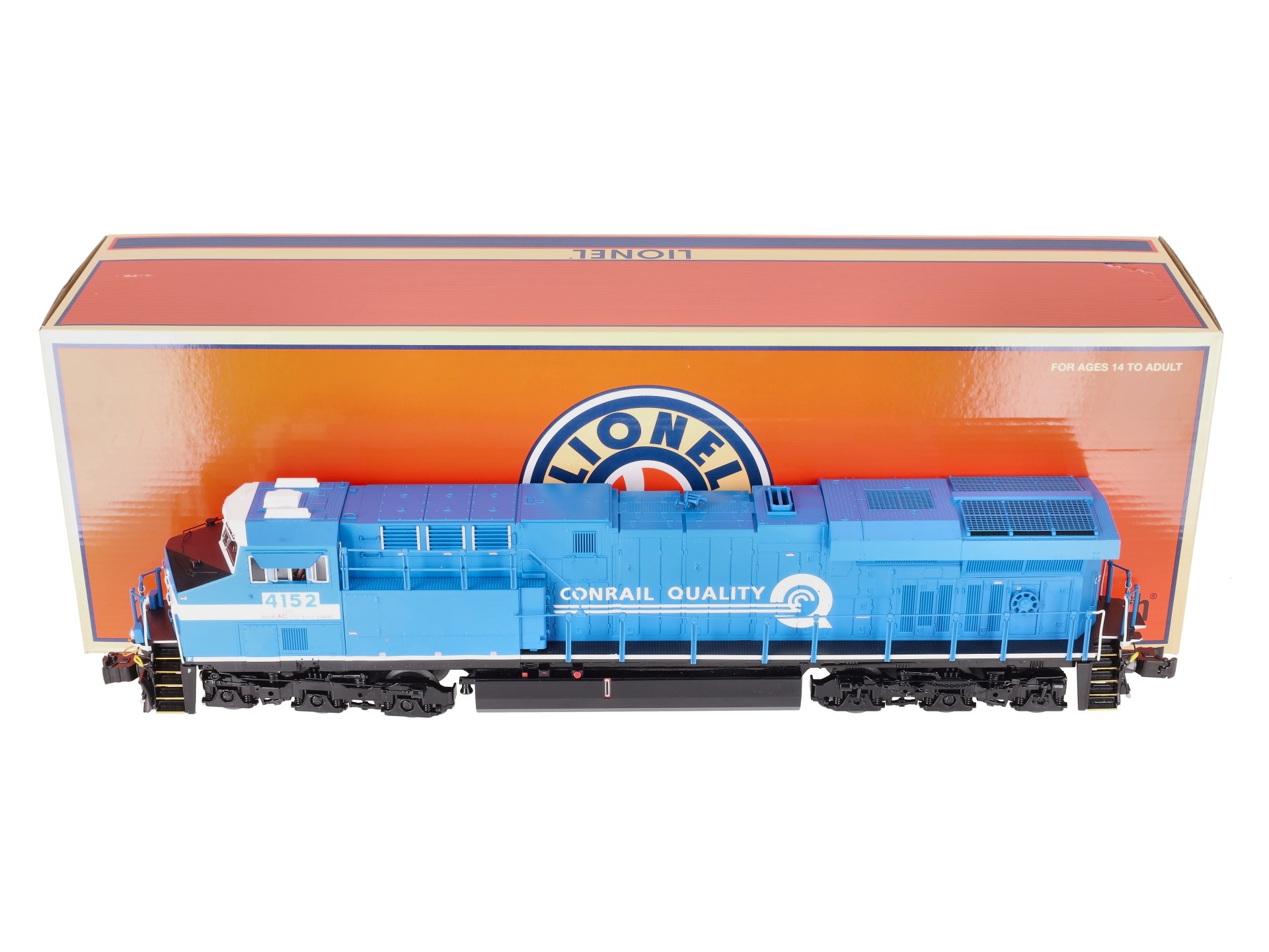 Here is a Lionel 2333469 O Conrail Legacy Superbass ES44AC Non-Powered Diesel Loco #4152. Features: Legacy Control System equipped - able to run in Legacy Control mode, in TrainMaster Command Control mode, or in Conventional mode with a standard transformer, Bluetooth Control - Operate with Universal Remote or LionChief App, Lionel Voice Control (LVC) - run your locomotive by speaking commands into your phone via LionChief App, Odyssey II Speed Control, IR Transmitter for SensoReady-to-Runack, Dual powerful maintenance-free motors with momentum flywheels, ElectroCoupler on front and rear, Traction tires, Refined Conventional Transformer Control mode with lower starting speeds, Fan-driven smoke unit, Adjustable smoke output, Directional lighting including LED headlights, Marker lights on front and rear, Illuminated number boards, Lighted cab interior, Die-cast trucks, pilot and fuel tank, Metal frame, High levels of separately applied metal details, Engineer and conductor figures, Kinematic pilot for closer coupling on curves.