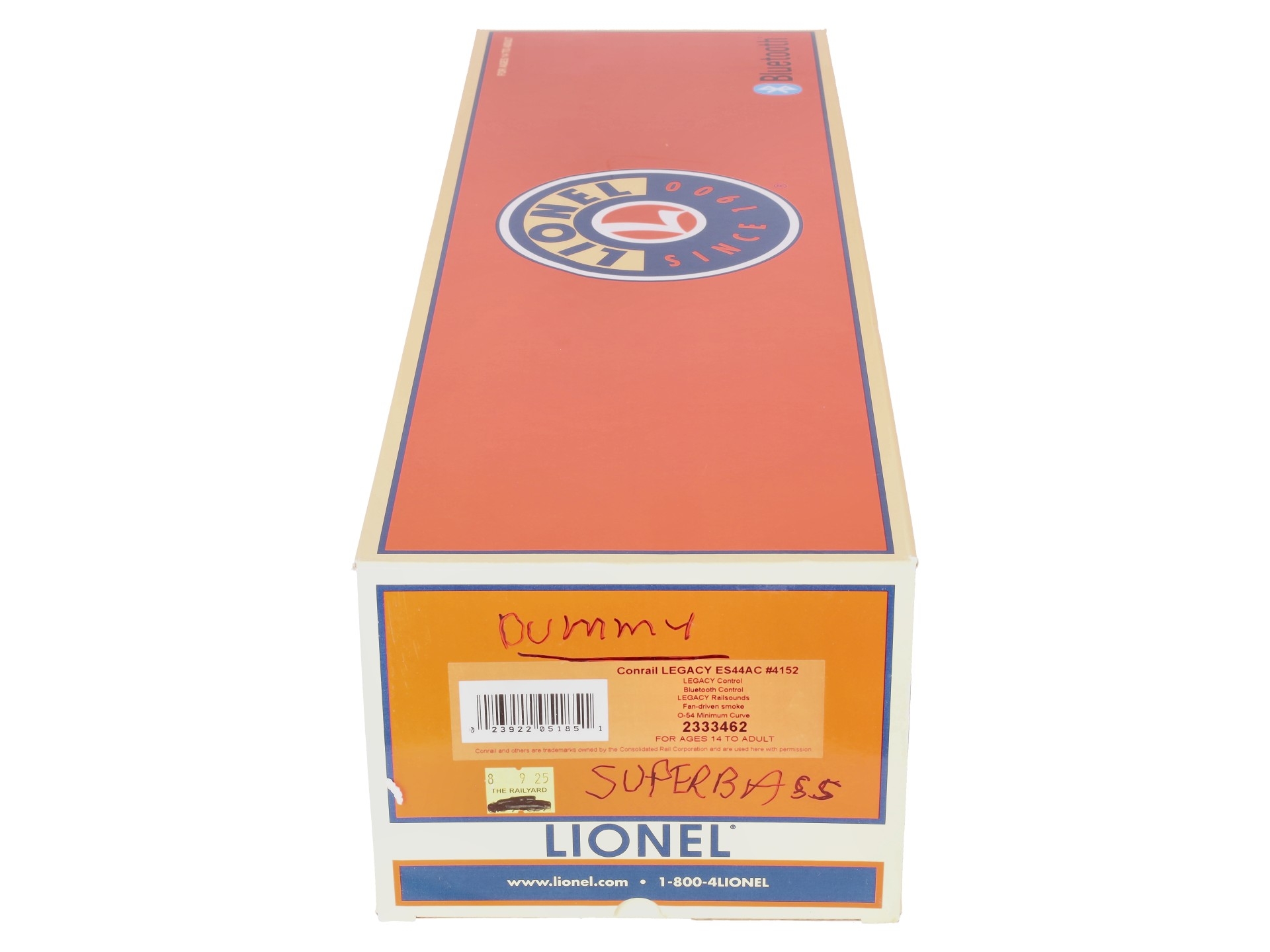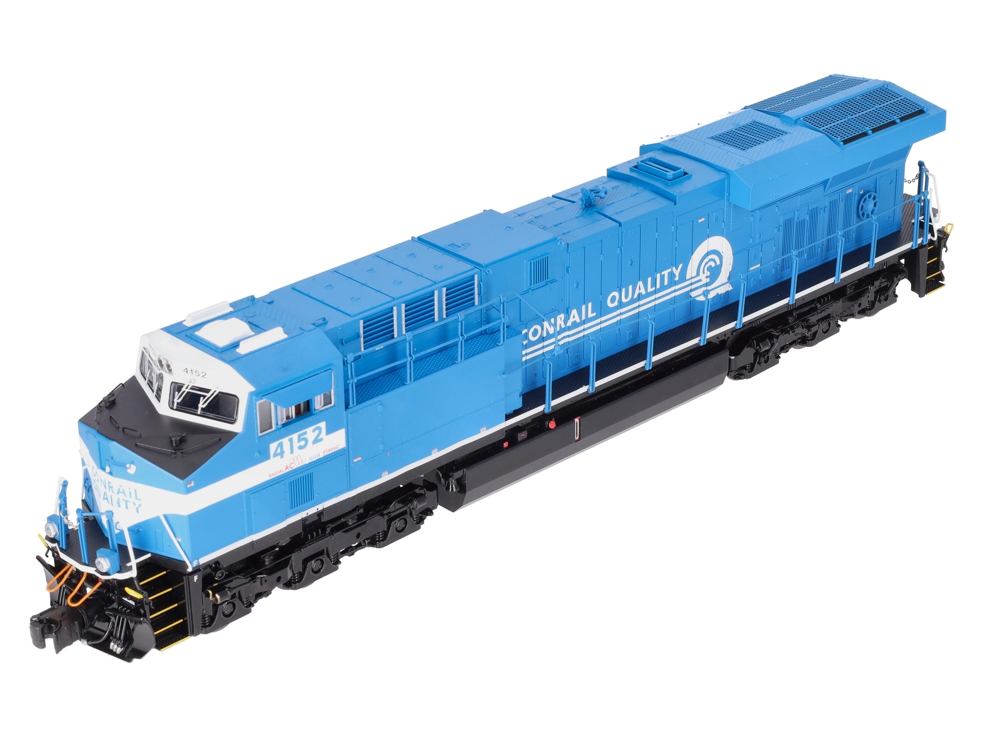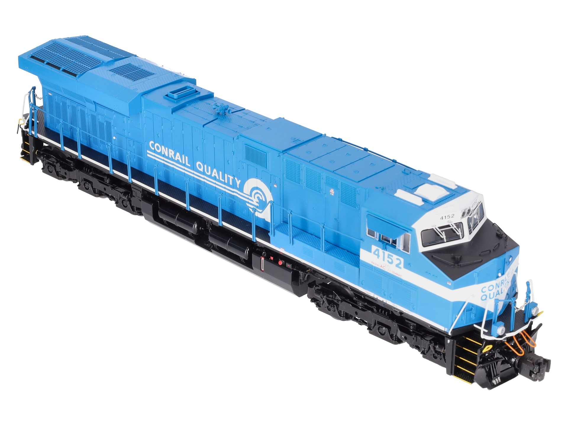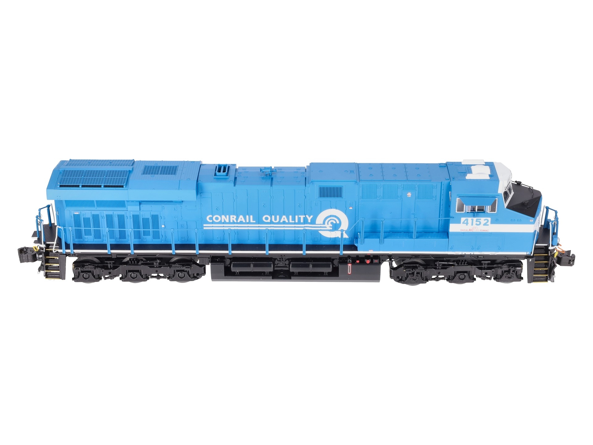Here is a Lionel 2333469 O Conrail Legacy Superbass ES44AC Non-Powered Diesel Loco #4152. Features: Legacy Control System equipped - able to run in Legacy Control mode, in TrainMaster Command Control mode, or in Conventional mode with a standard transformer, Bluetooth Control - Operate with Universal Remote or LionChief App, Lionel Voice Control (LVC) - run your locomotive by speaking commands into your phone via LionChief App, Odyssey II Speed Control, IR Transmitter for SensoReady-to-Runack, Dual powerful maintenance-free motors with momentum flywheels, ElectroCoupler on front and rear, Traction tires, Refined Conventional Transformer Control mode with lower starting speeds, Fan-driven smoke unit, Adjustable smoke output, Directional lighting including LED headlights, Marker lights on front and rear, Illuminated number boards, Lighted cab interior, Die-cast trucks, pilot and fuel tank, Metal frame, High levels of separately applied metal details, Engineer and conductor figures, Kinematic pilot for closer coupling on curves.