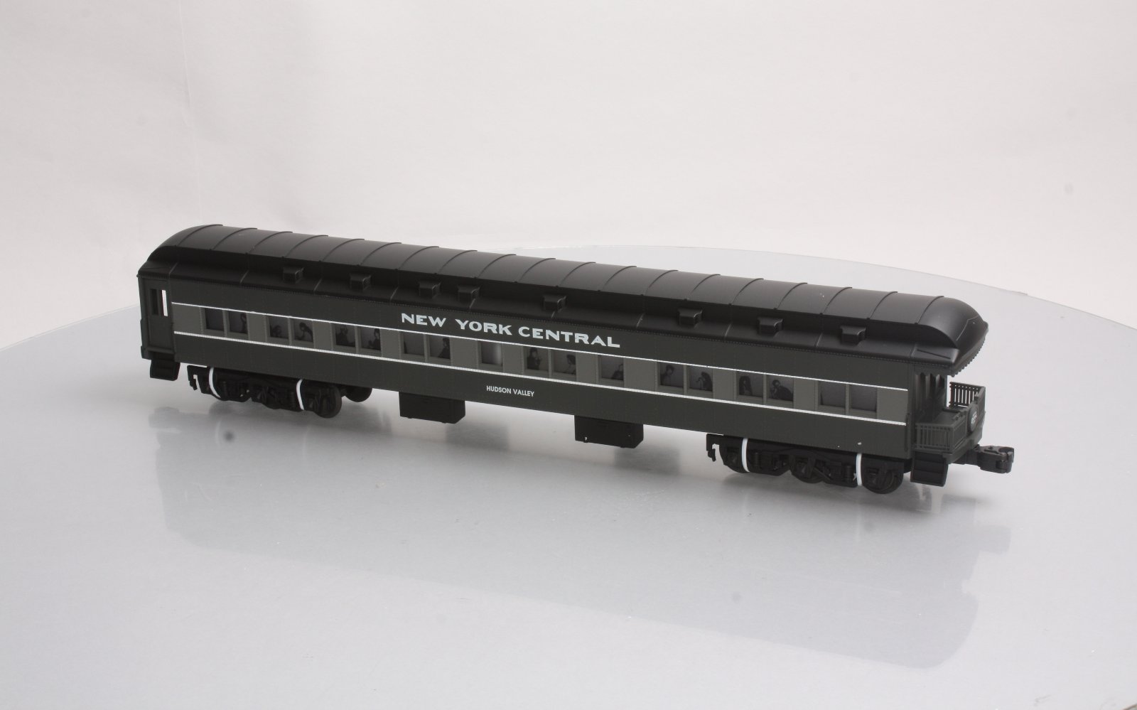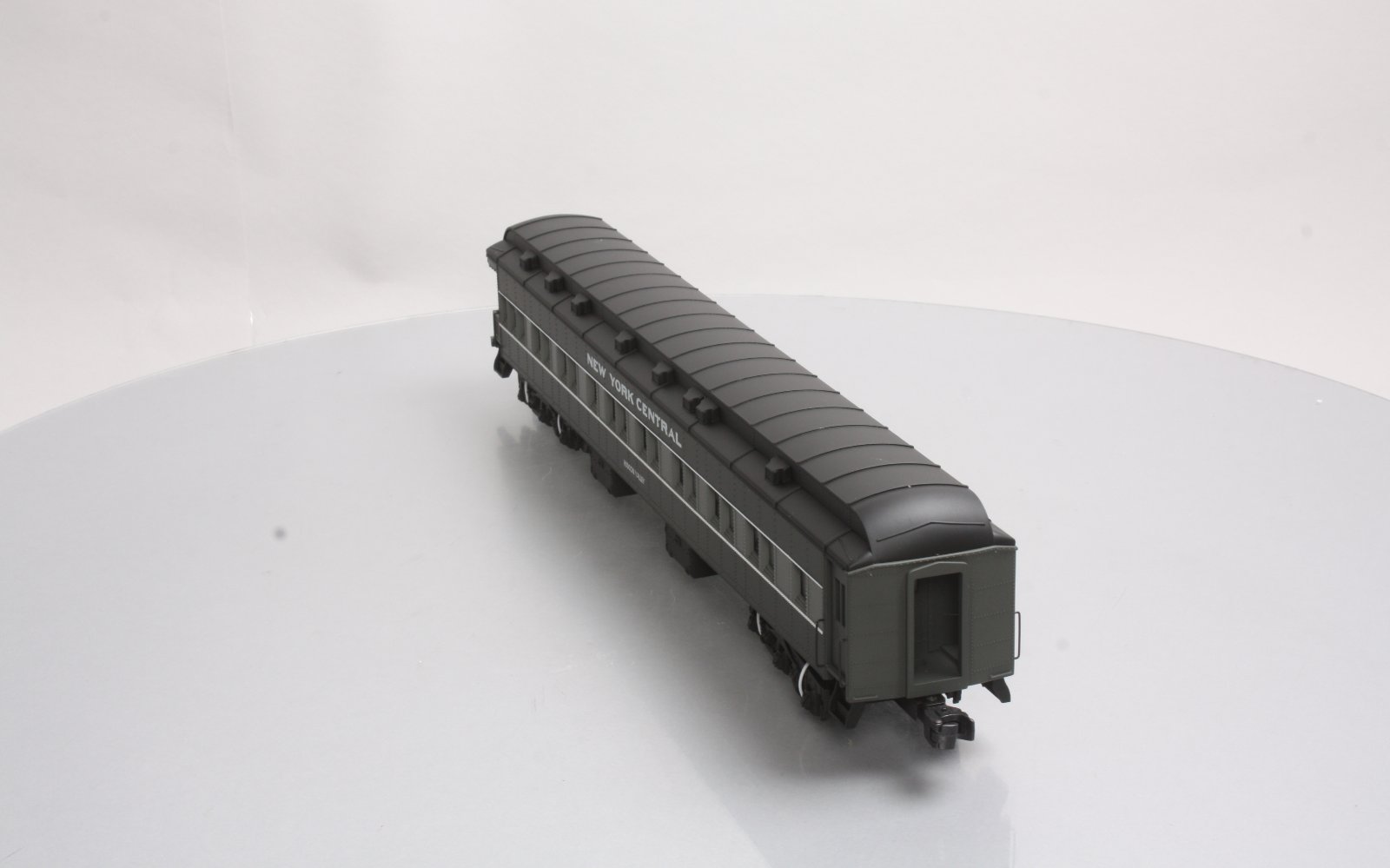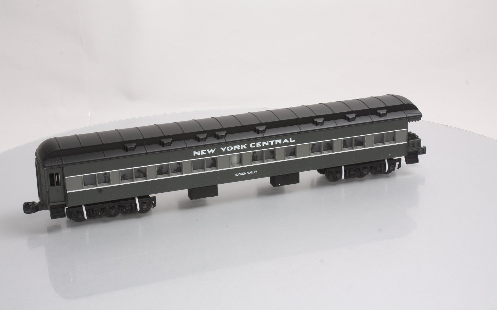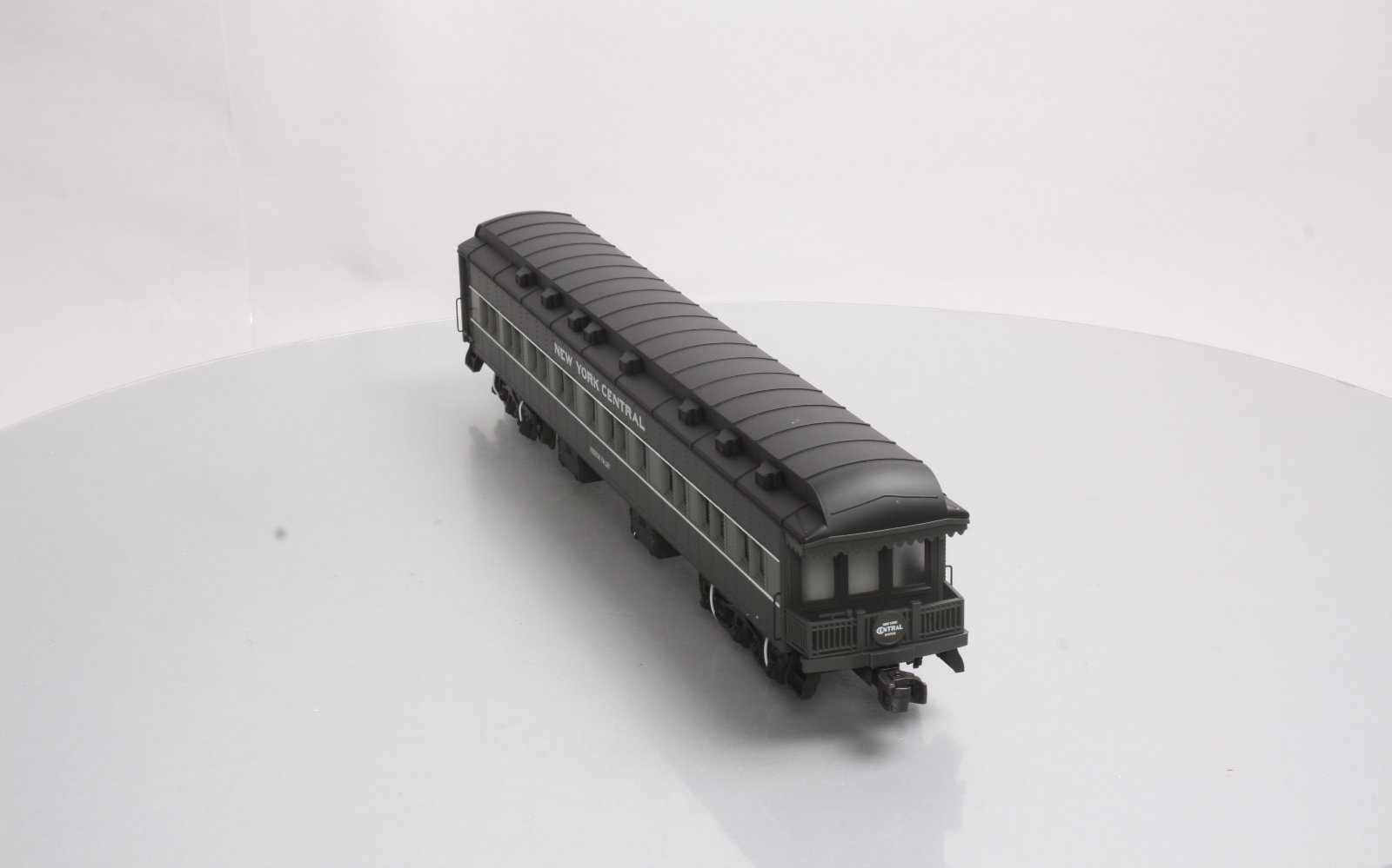 Here is a Lionel 6-19082 O Gauge New York Central Heavyweight Observation Car from 1997. The features include an injection molded plastic body, interior illumination, passenger silhouettes, opening vestibule doors, die-cast 6-wheel trucks with magnetic couplers. It is 18 inches long and requires a minimum radius 42 inch diameter track to operate.