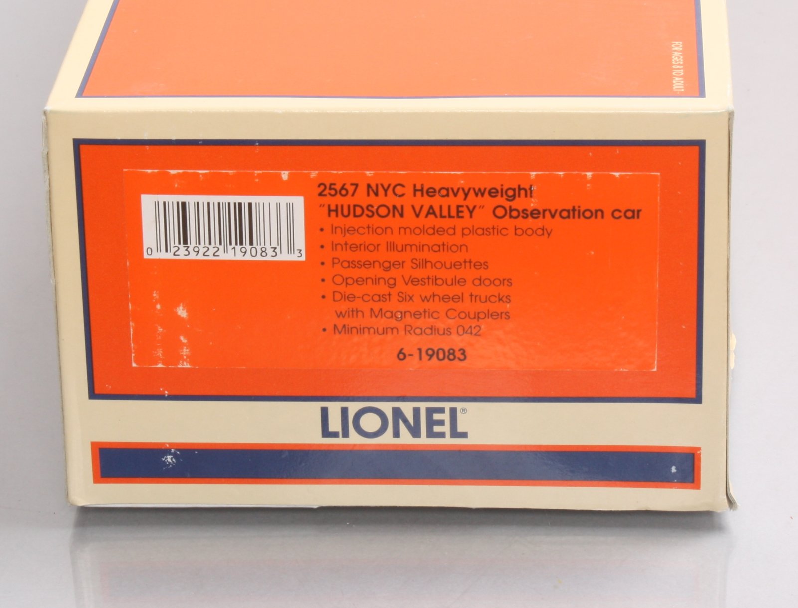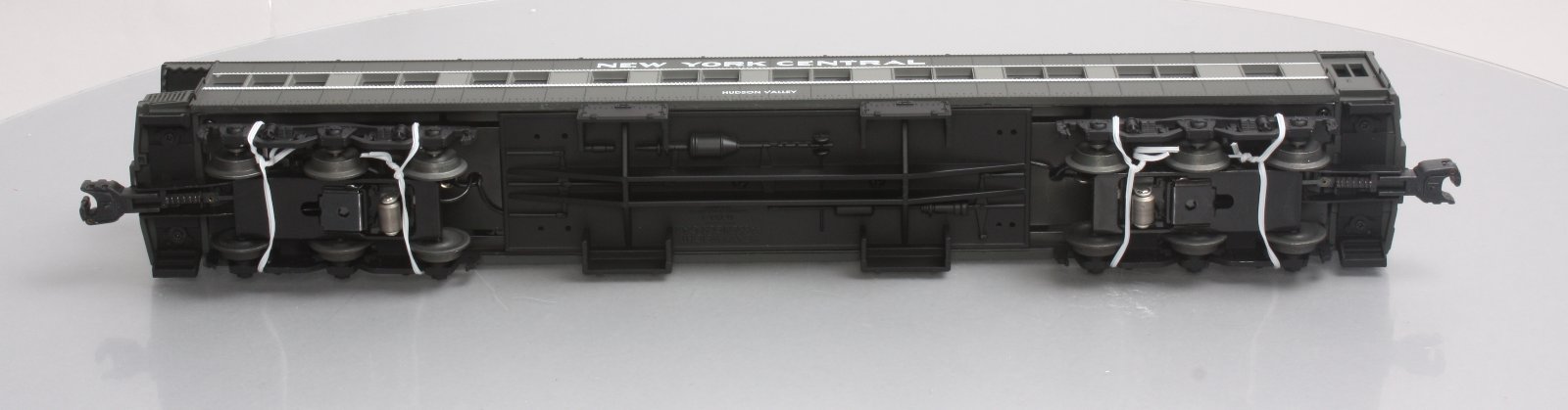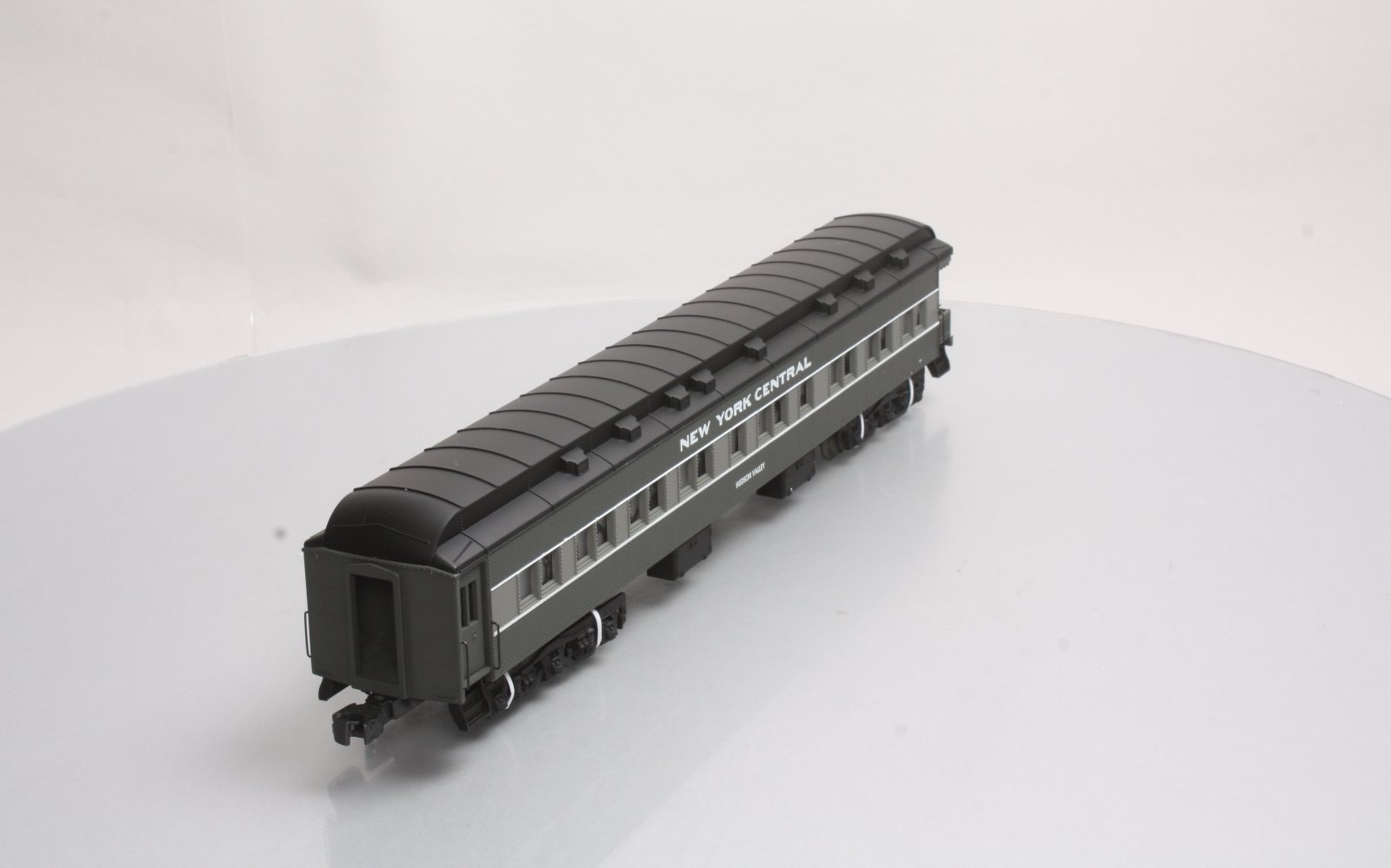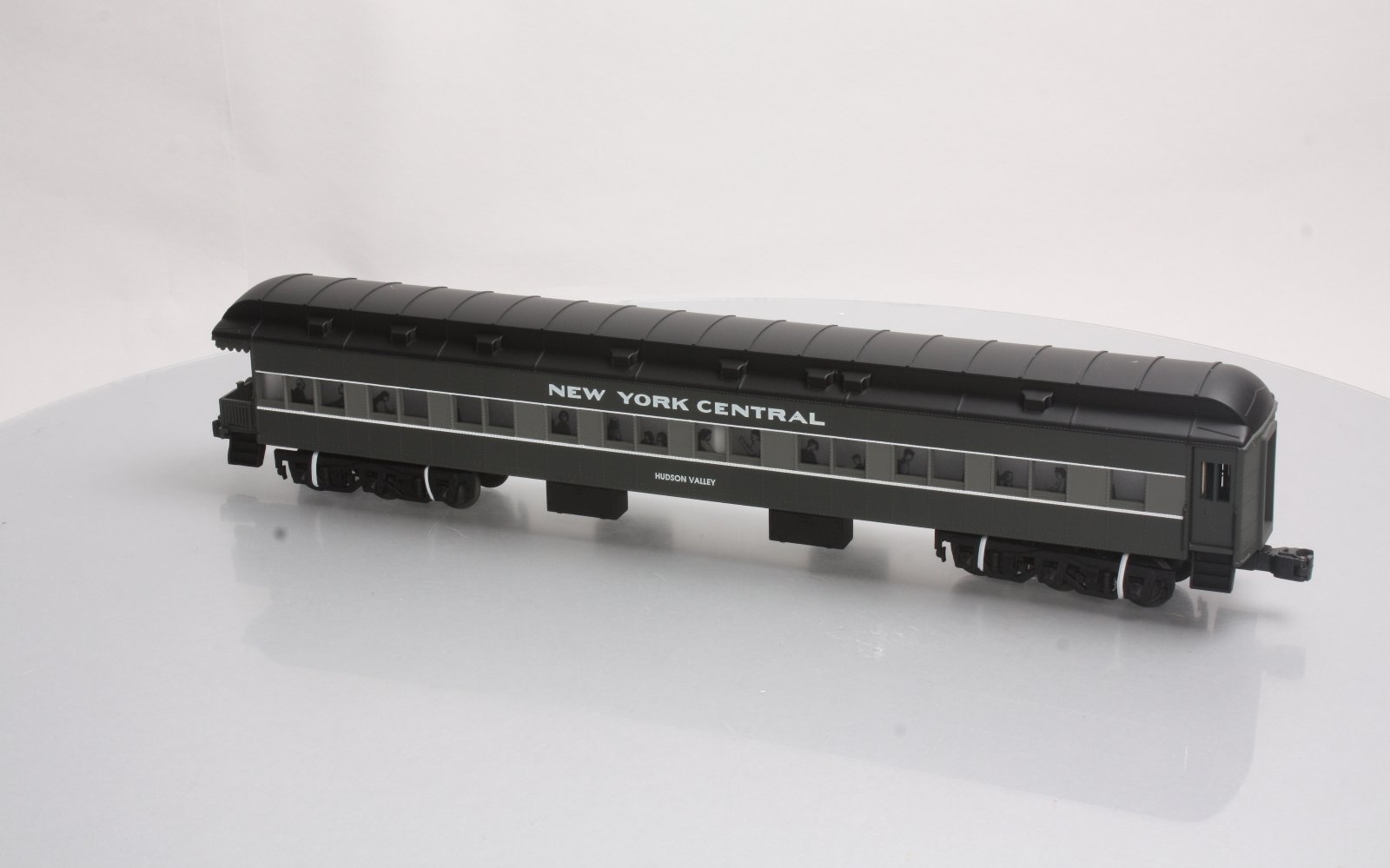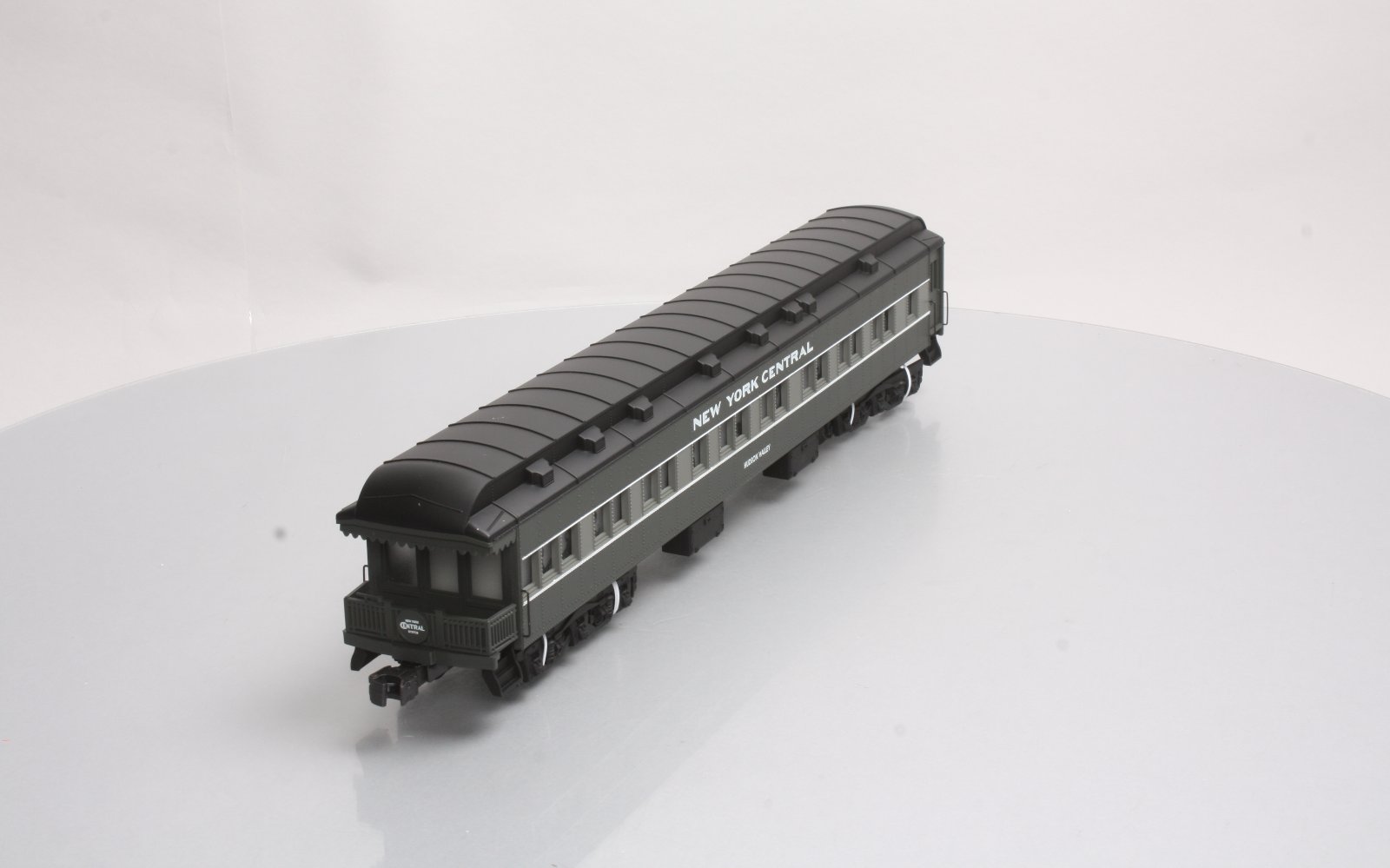 Here is a Lionel 6-19082 O Gauge New York Central Heavyweight Observation Car from 1997. The features include an injection molded plastic body, interior illumination, passenger silhouettes, opening vestibule doors, die-cast 6-wheel trucks with magnetic couplers. It is 18 inches long and requires a minimum radius 42 inch diameter track to operate.