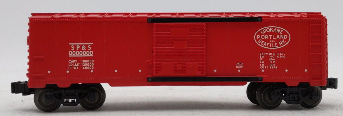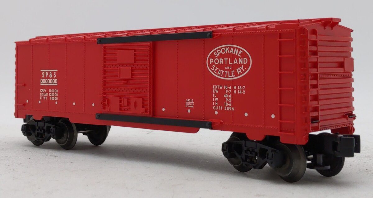 Here is a Lionel 39212 Spokane Portland & Seattle Boxcar from 2001. This car is part of Lionel's Archive Series, which is a group of cars Lionel made prototypes of in the 1950s and 60s but never put into production. It features sliding doors, die cast sprung trucks and operating couplers.