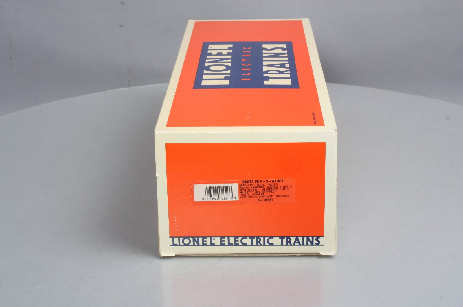 Here is a Lionel 6-18121 O Santa Fe F-3 Dummy Non-Powered Diesel B-Unit #200A. This unit features: Die-Cast metal trucks, metal ladders, wheels, and axles, porthole windows, and plastic and stamped metal chassis. Please check the photos for a detailed look at this item.