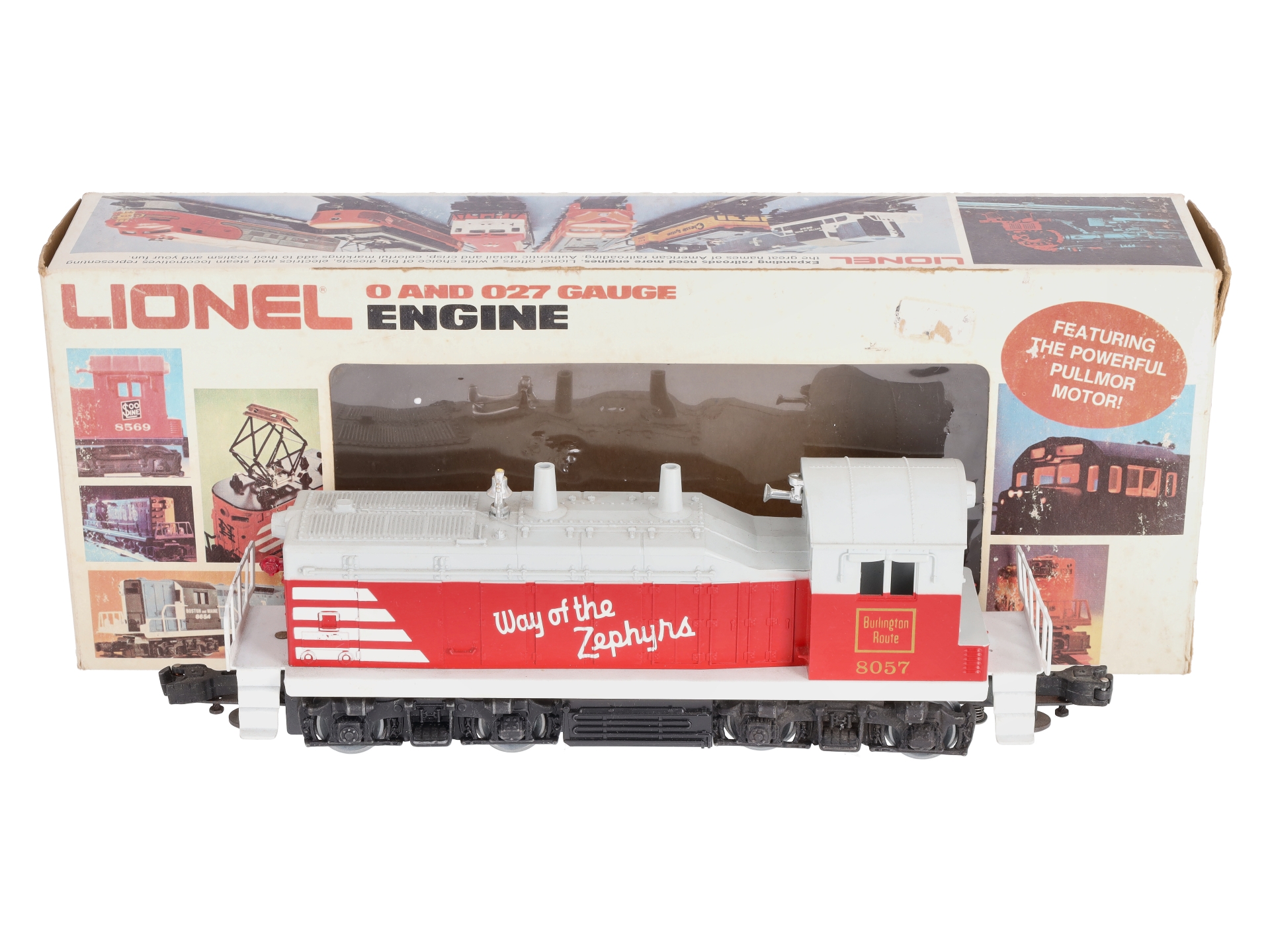 Here is a Lionel 6-8057 Burlington Route NW-2 Yard Switcher from 1980. Features include: a headlight, e-unit, single motor, and operating knuckle couplers. This is one of the rarer Lionel SW1s.