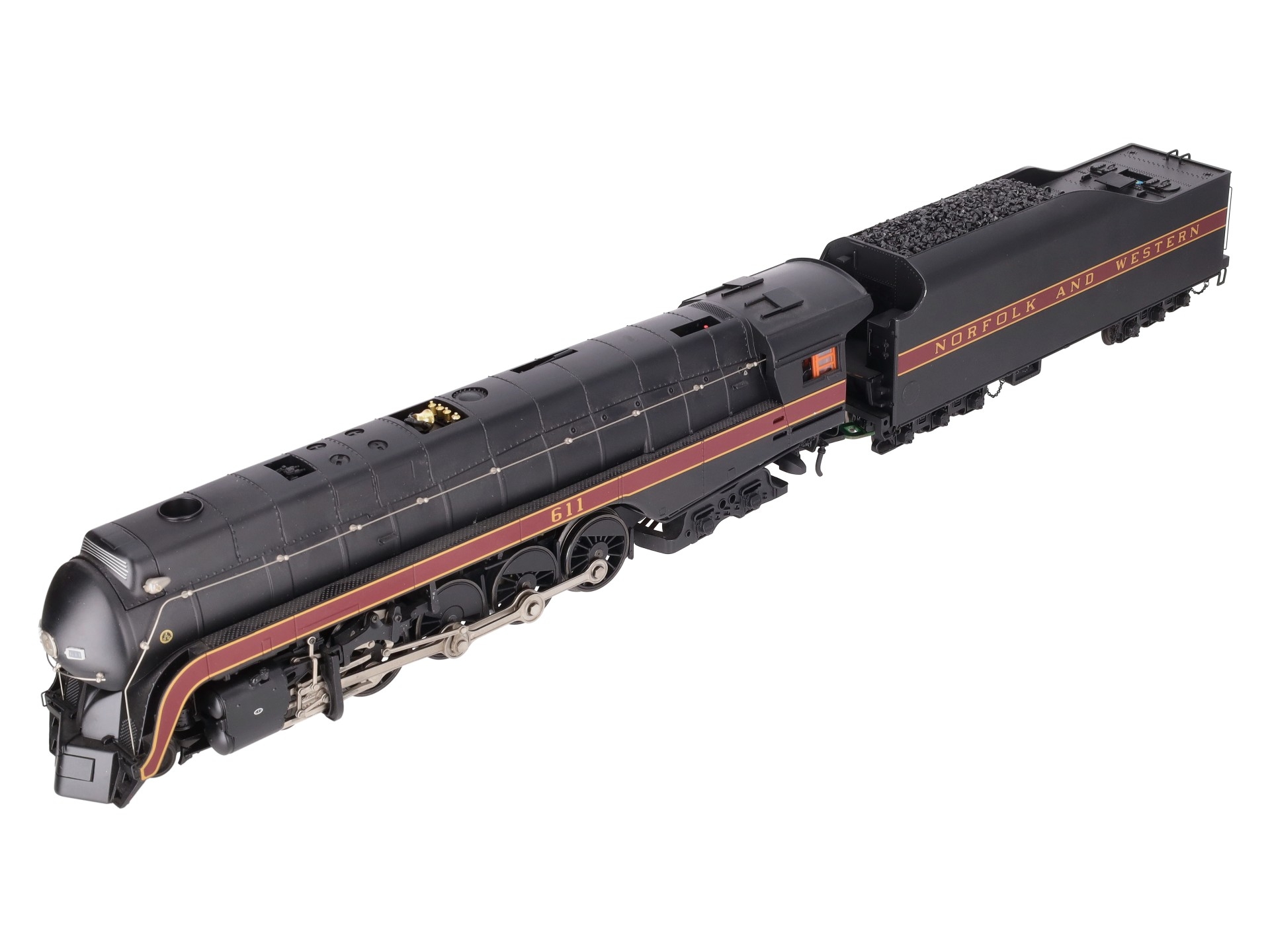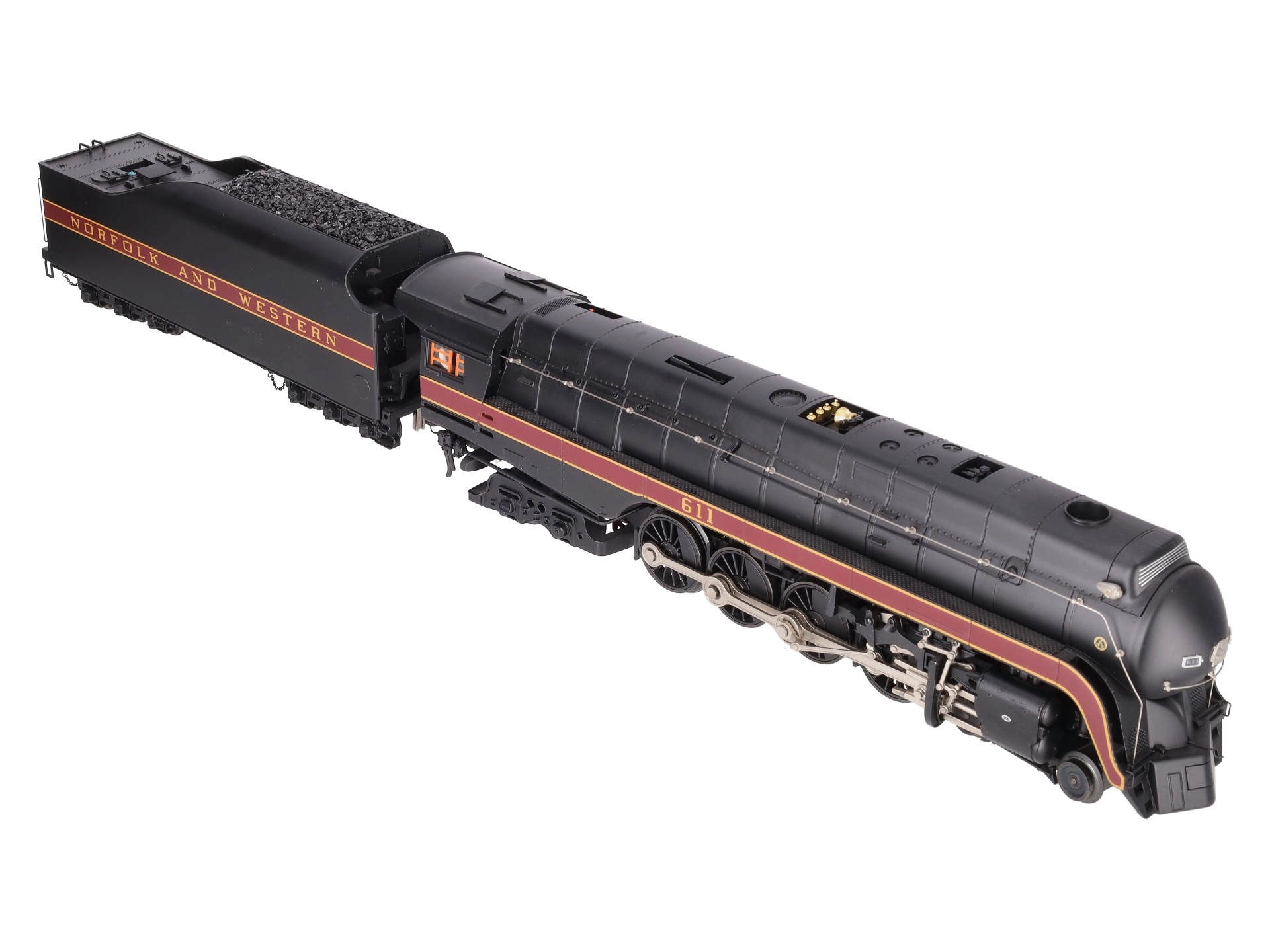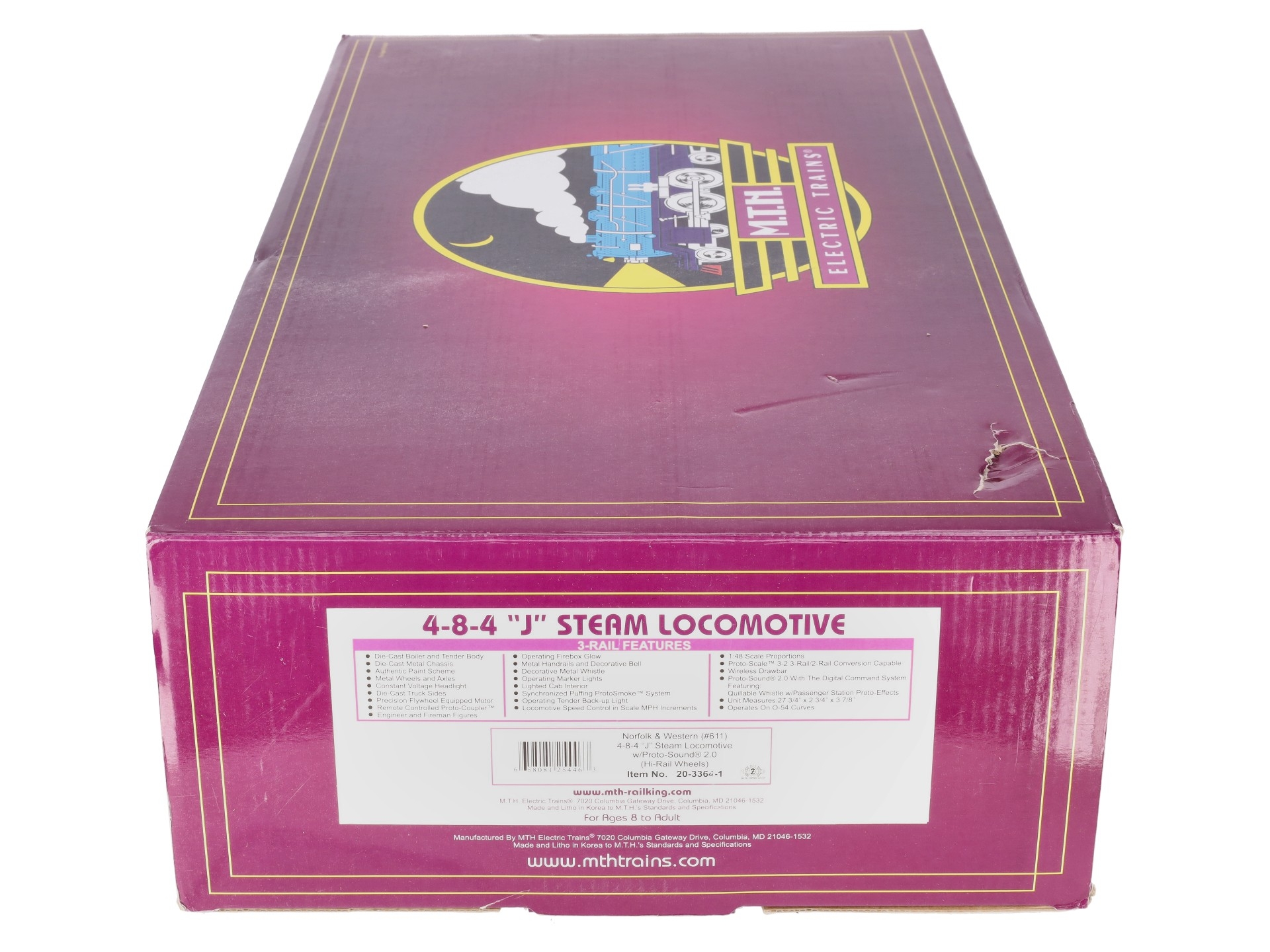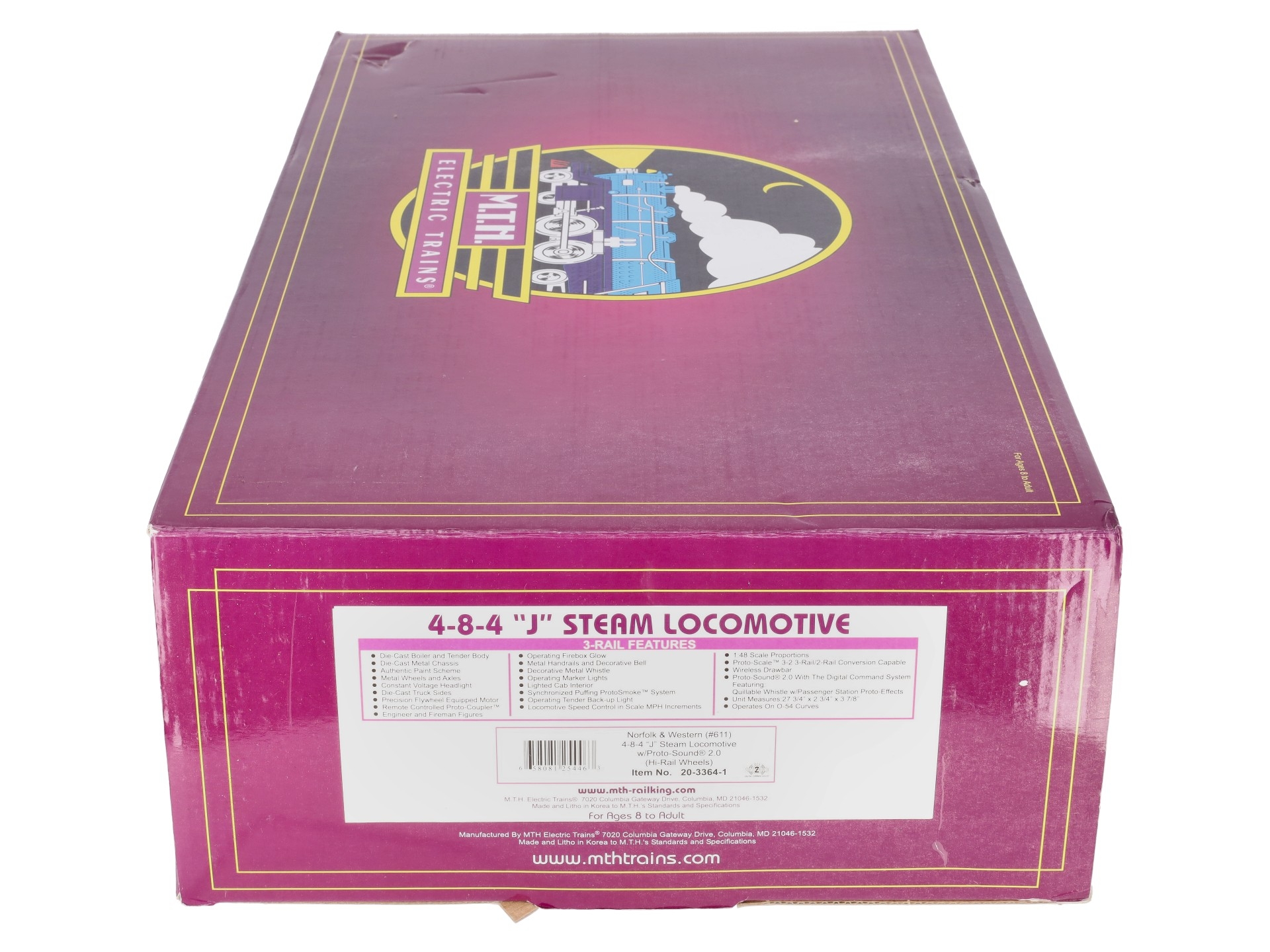 Here is an MTH 20-3364-1 Norfolk & Western 4-8-4 J Steam Locomotive & Tender with Proto-Sound 2.0 (Hi-Rail Wheels). Features include: