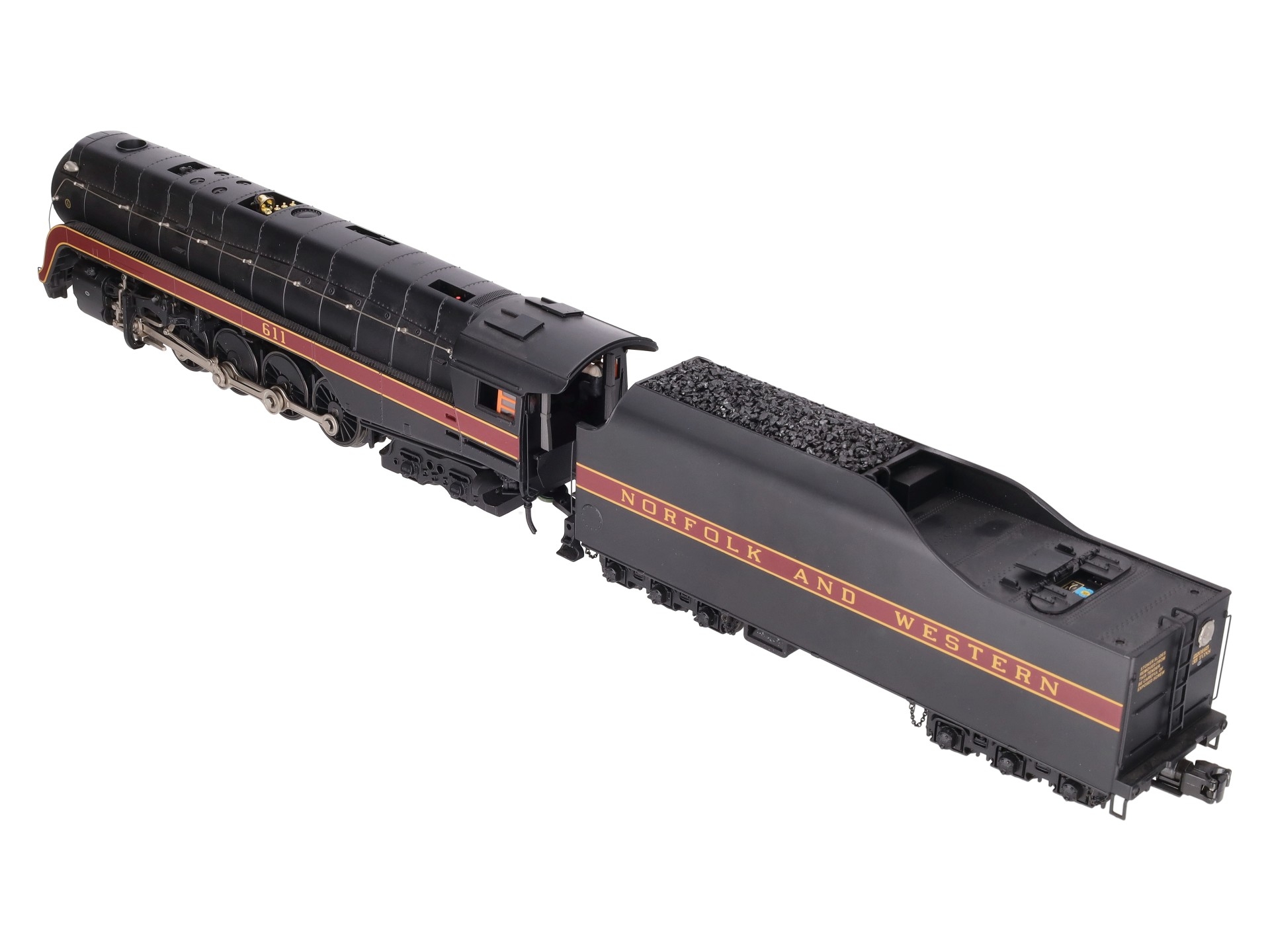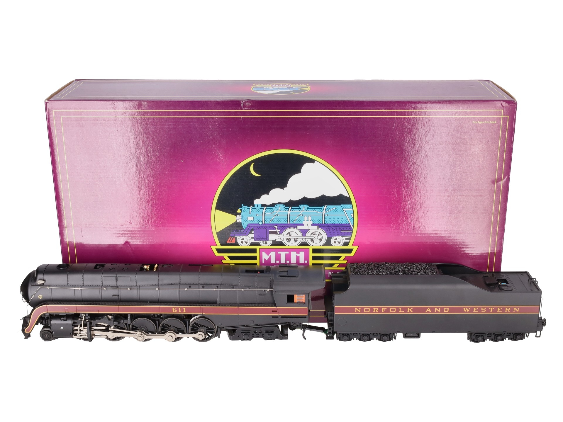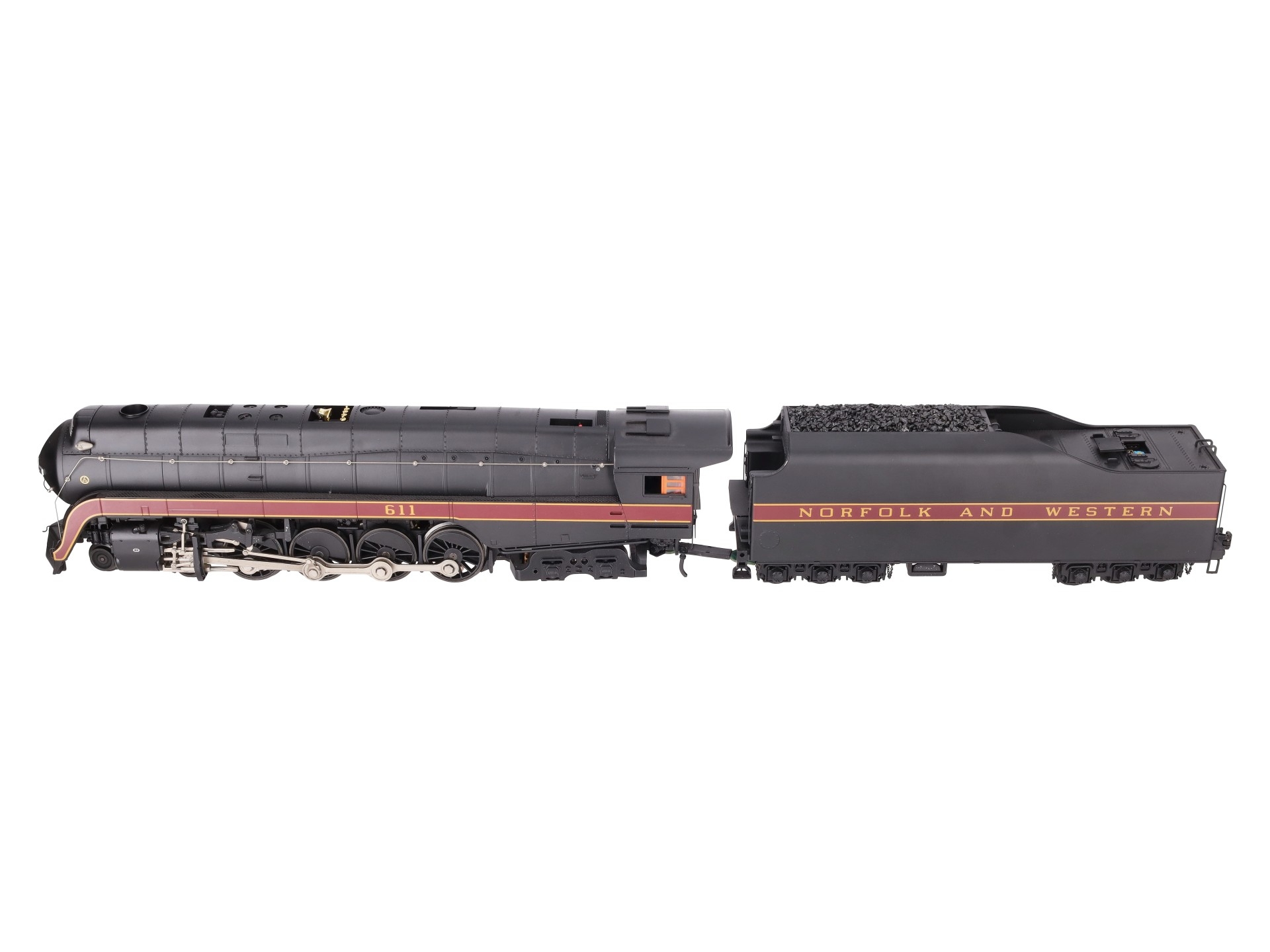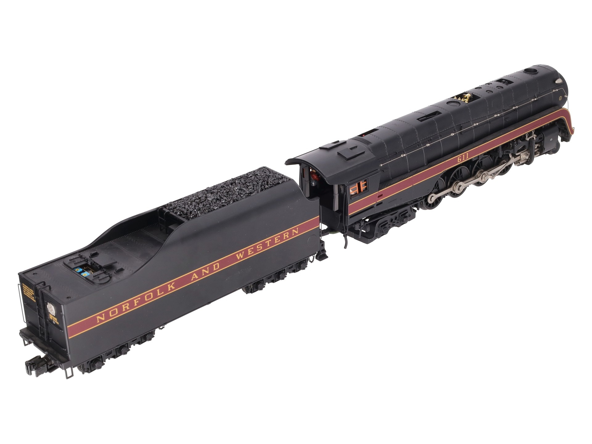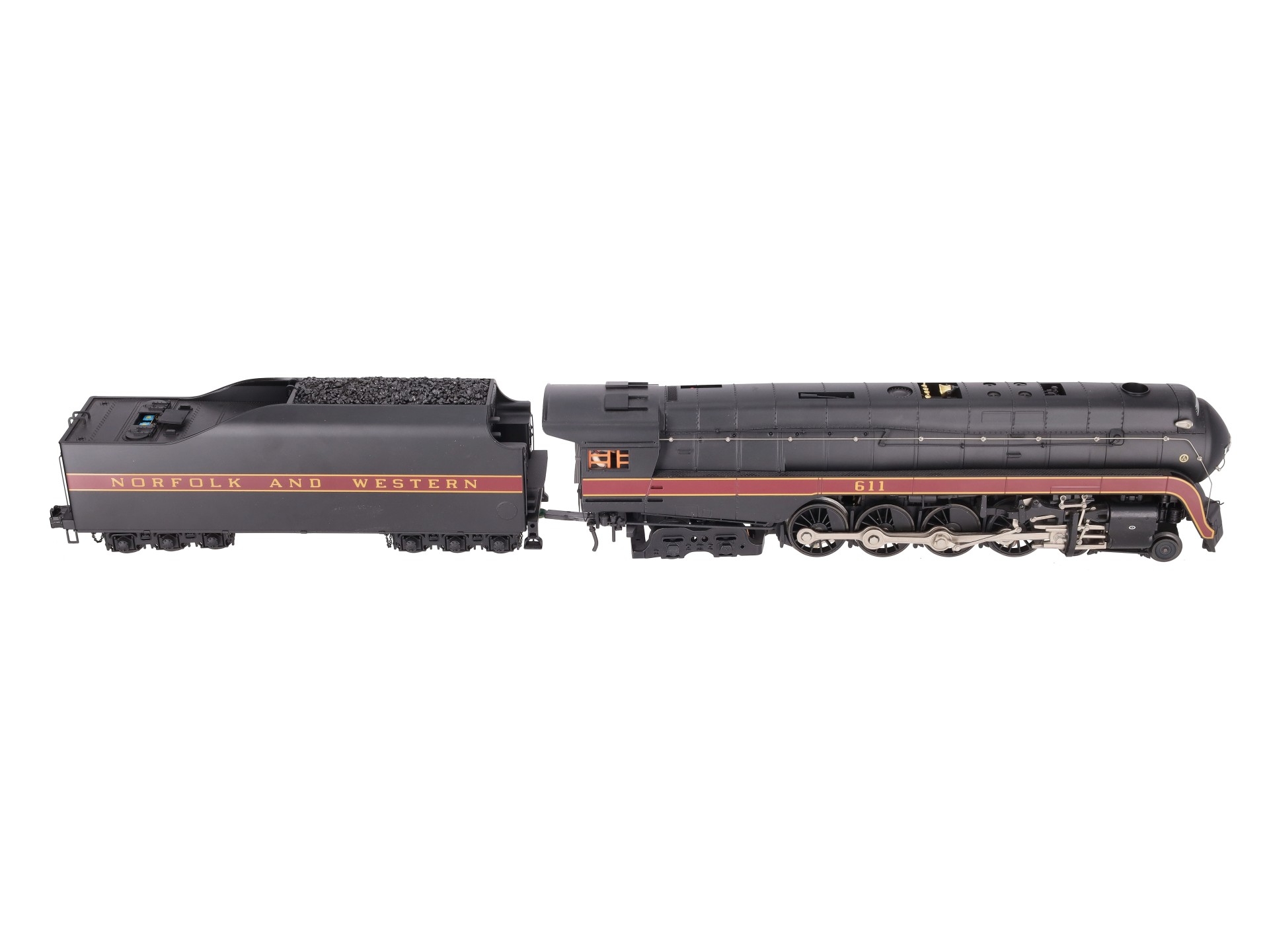 Here is an MTH 20-3364-1 Norfolk & Western 4-8-4 J Steam Locomotive & Tender with Proto-Sound 2.0 (Hi-Rail Wheels). Features include: