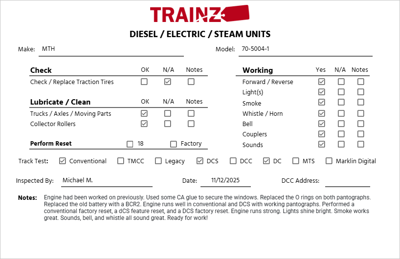 Domestic Customers: If you and Trainz decide that the best recourse is to return the item for refund or repair we will send you a pre-paid return call tag at no cost (except for returns due to customer remorse). Make sure to include your contact and order information when you return your items. Once Trainz receives and inspects the items we will repair your item or issue a refund.