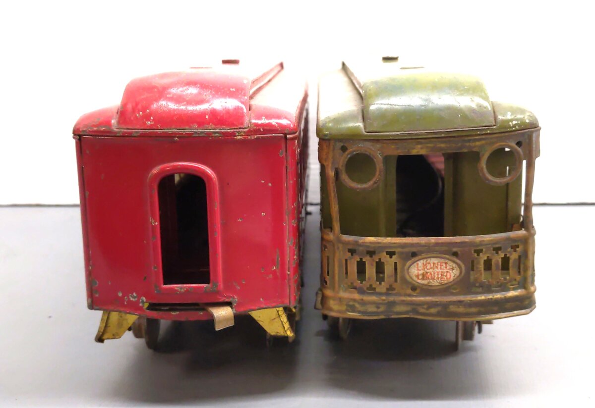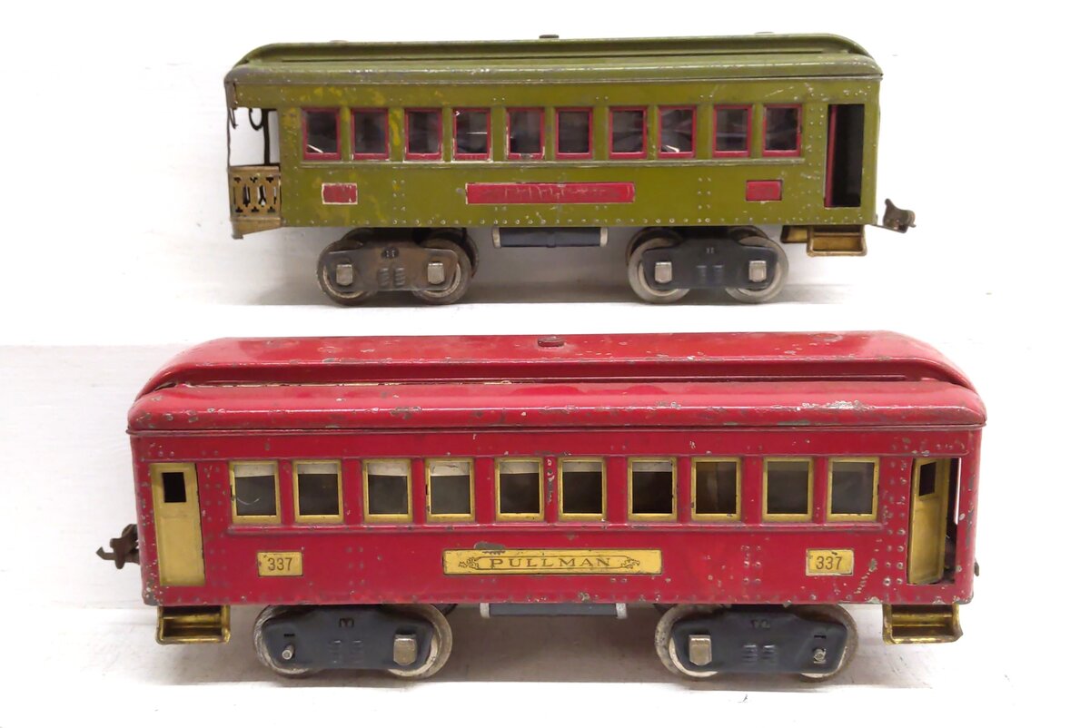 This item has been graded per TCA standards C-6: Very Good based on visual appearance. The are scratches, scuffs, and rust along the surface of these cars. The wheels show spots of rust. Car #337 has loose window inserts on one side. The original boxes are not included. Overall condition is Very Good.