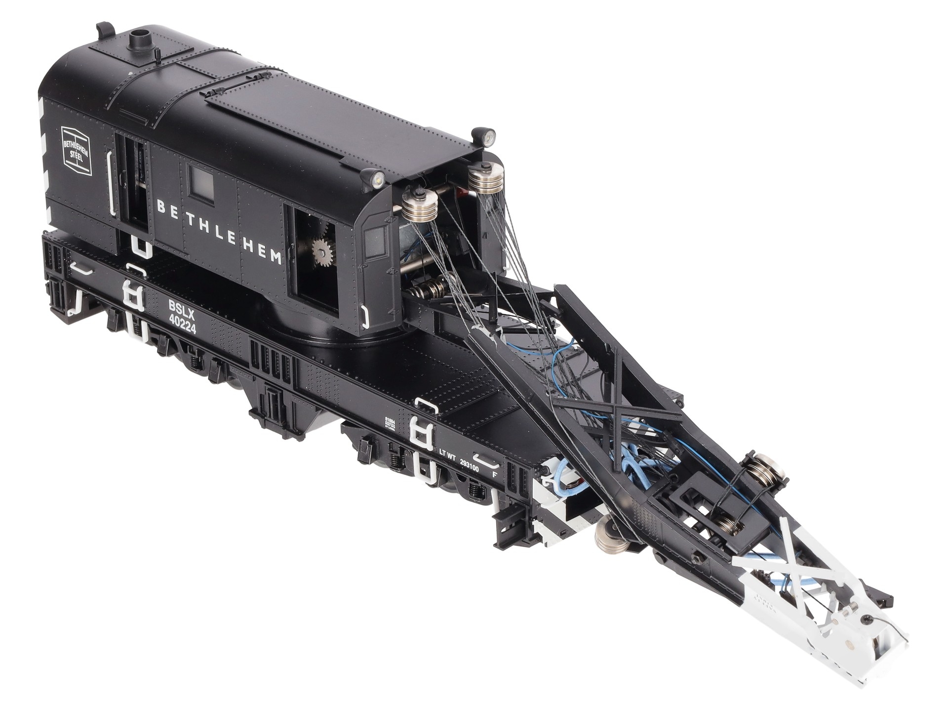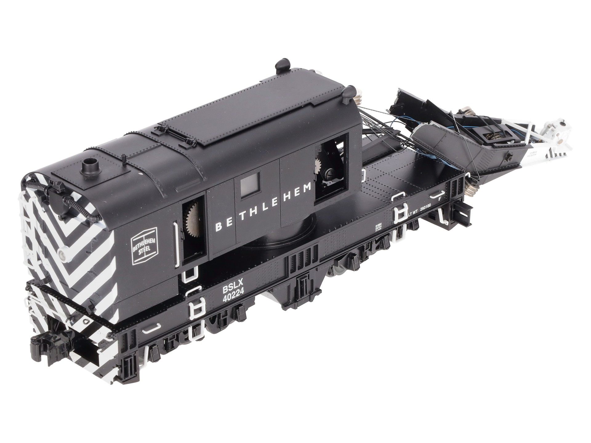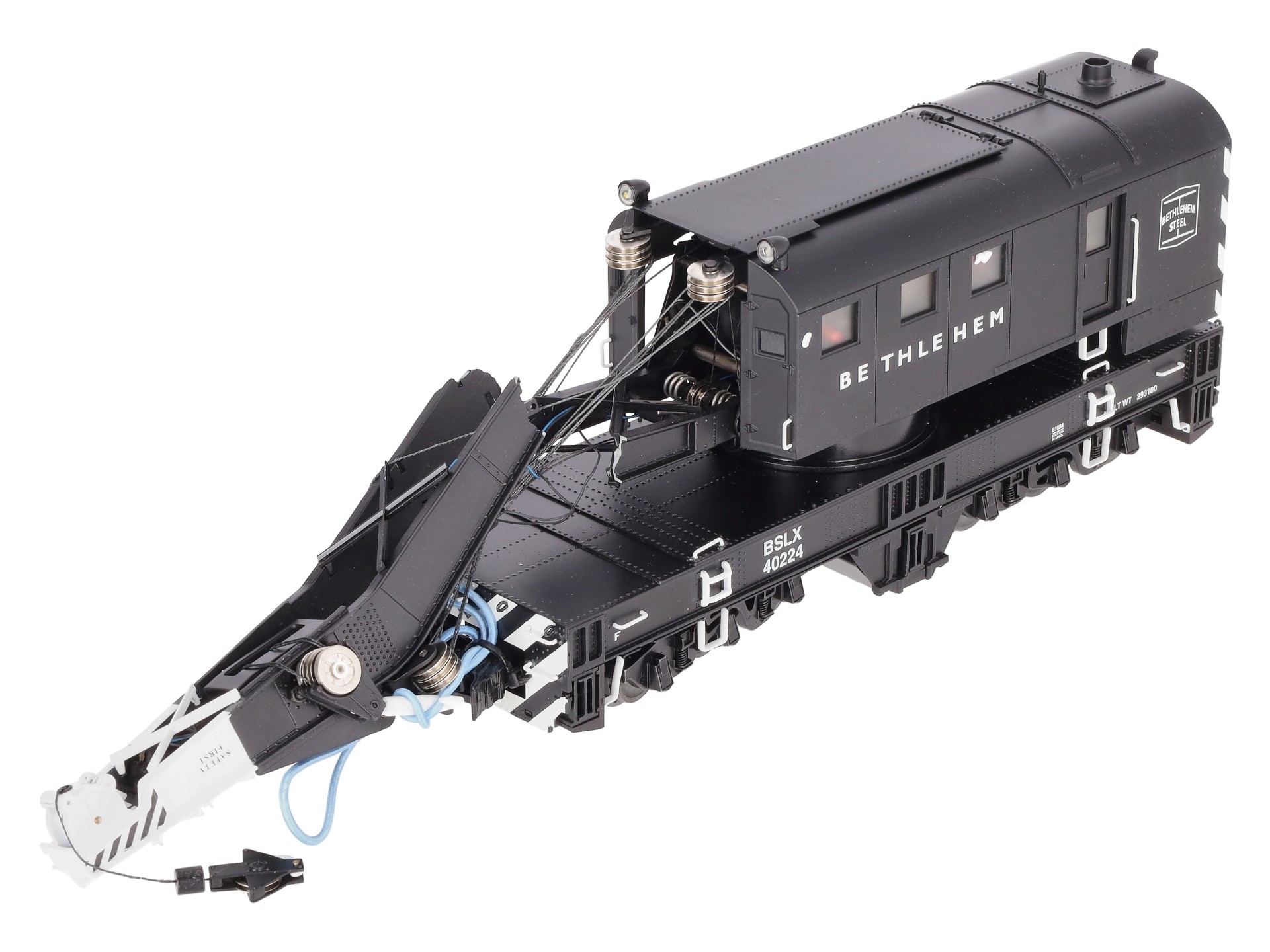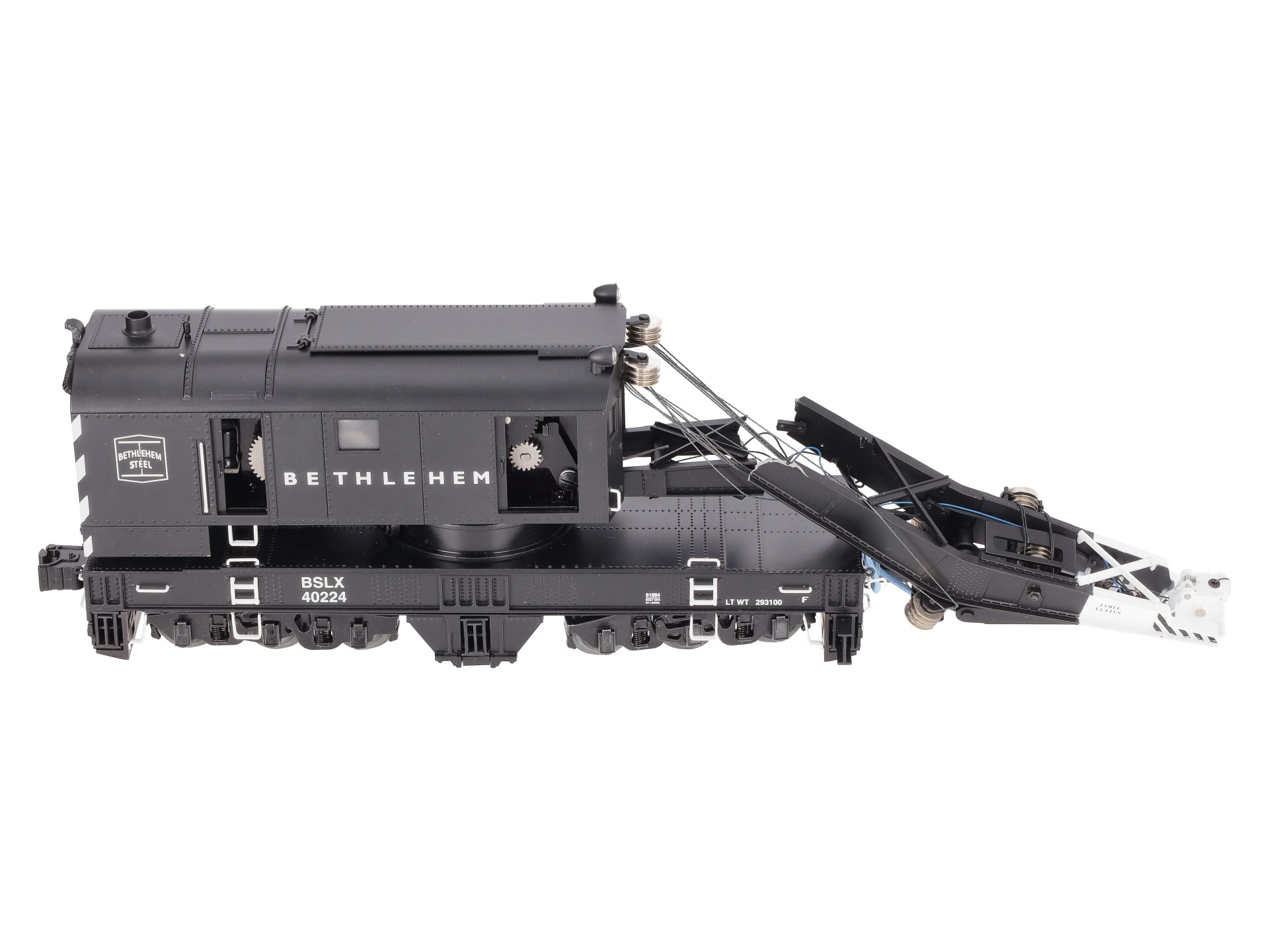 This is a Lionel 6-81884 O Bethlehem Steel Command Control Scale Crane Car. Features the Command control crane cars equipped with the LEGACY Control System bring the highest level of action to Scale railroading. Pull the car into position and run M.o.W. operations anywhere on your layout. Offering fullest remote control operation from a CAB-2 Remote Controller, they are also operable from your CAB-1 or CAB-1L remote. Rotate the cab 360 degrees, lower and raise the boom and two hook lines, deploy the six outriggers and control front and rear lights — all from your remote controller!