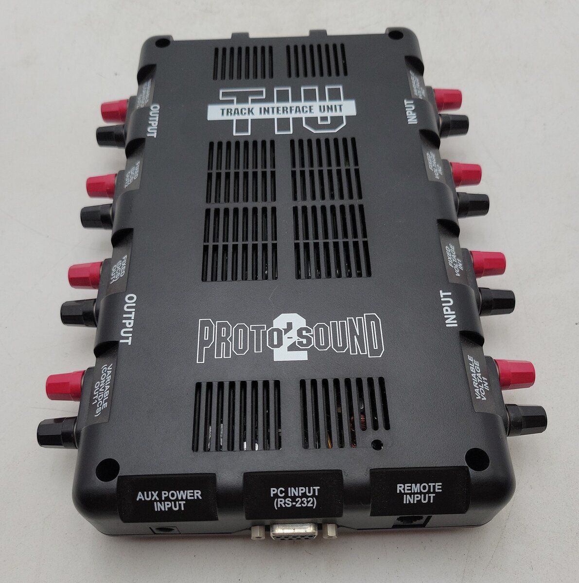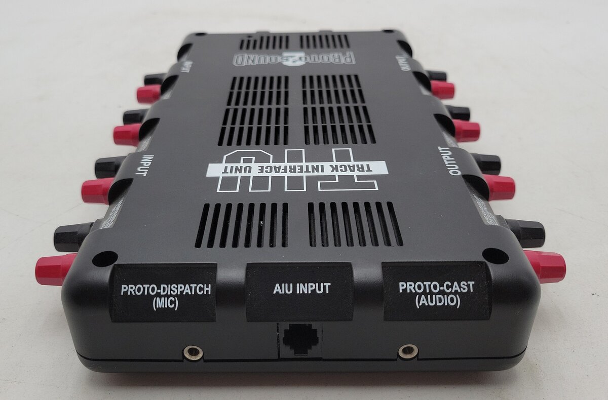 This is an MTH MTH 50-1001 O DCS Track Interface Unit . Thirty-two buttons and an LCD display provide total control over Proto-Sound 2.0 features such as setting scale mph, passenger station announcements and setting multi-unit lash-ups. The range is approximately 50 feet.