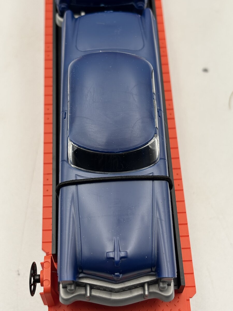 This item has been graded per TCA standards C-6: Very Good based on visual appearance. The original box is included. The instruction manual is not included. The original shipping carton is included. There is light scratches on the side of the flatcar. On top of the blue automobiles there is moderate scratching. The overall appearance of this item may be improved with a gentle and thorough cleaning. The box shows light aging with fading spot in some spots. Overall condition is Very Good.