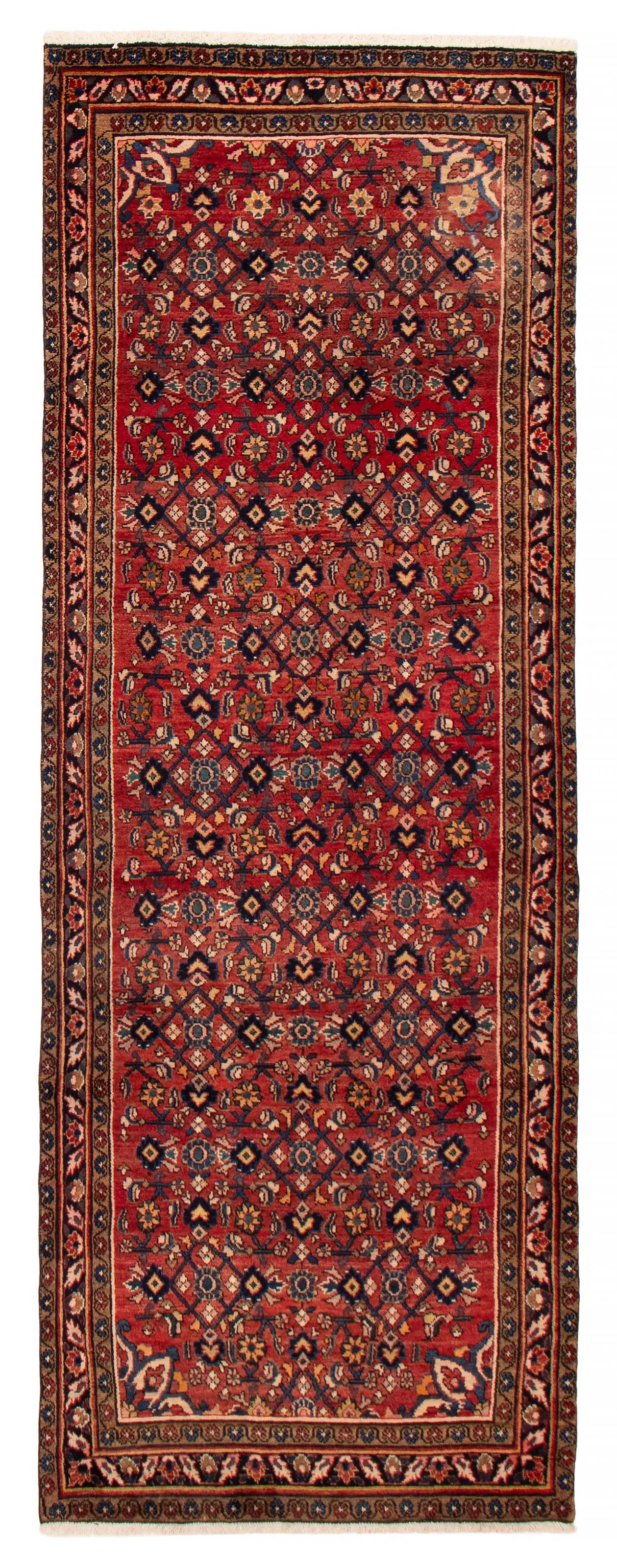 Splendid piece of work that is woven in Turkey with a re-interpretation of village Persian designs This Persian Style rug is rendered in no way inferior by the fact that the style is copied from the Persian Zanjan and Persian Persian For this reason, it is sometimes confused for its Persian counterpart as the Persian Zanjan serves as a model for many tribal Turkish rugs especially the Andelz rug design Bordered, Traditional style rug with Blue, Cream, Dark Navy, Khaki, Red, Tan accent colors Imported from Turkey and crafted using the finest weaving techniques Hand-knotted and constructed from 100% Wool with 100% Cotton foundation 3-Feet 8-Inch by 10-Feet 7-Inch (113cm x 323cm)